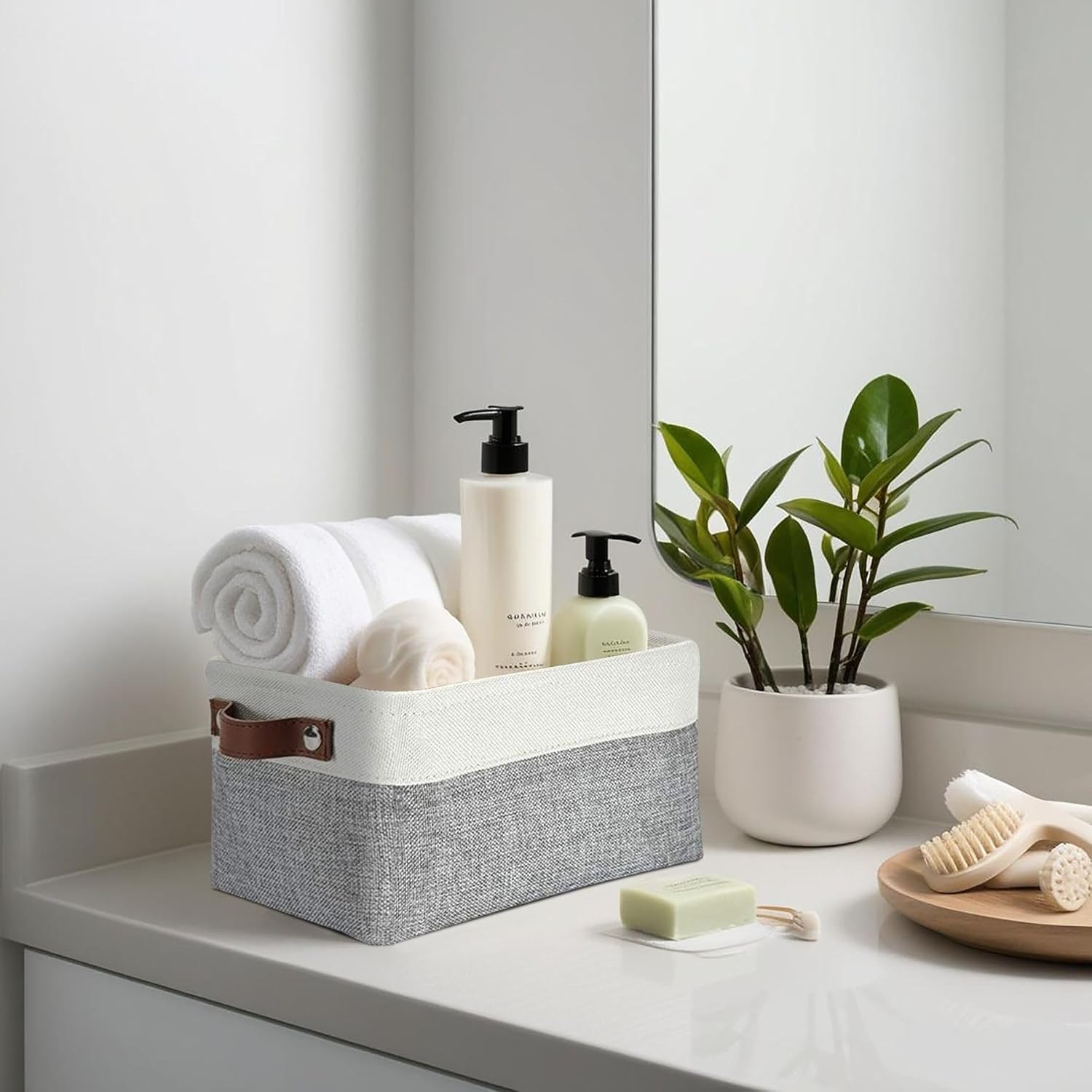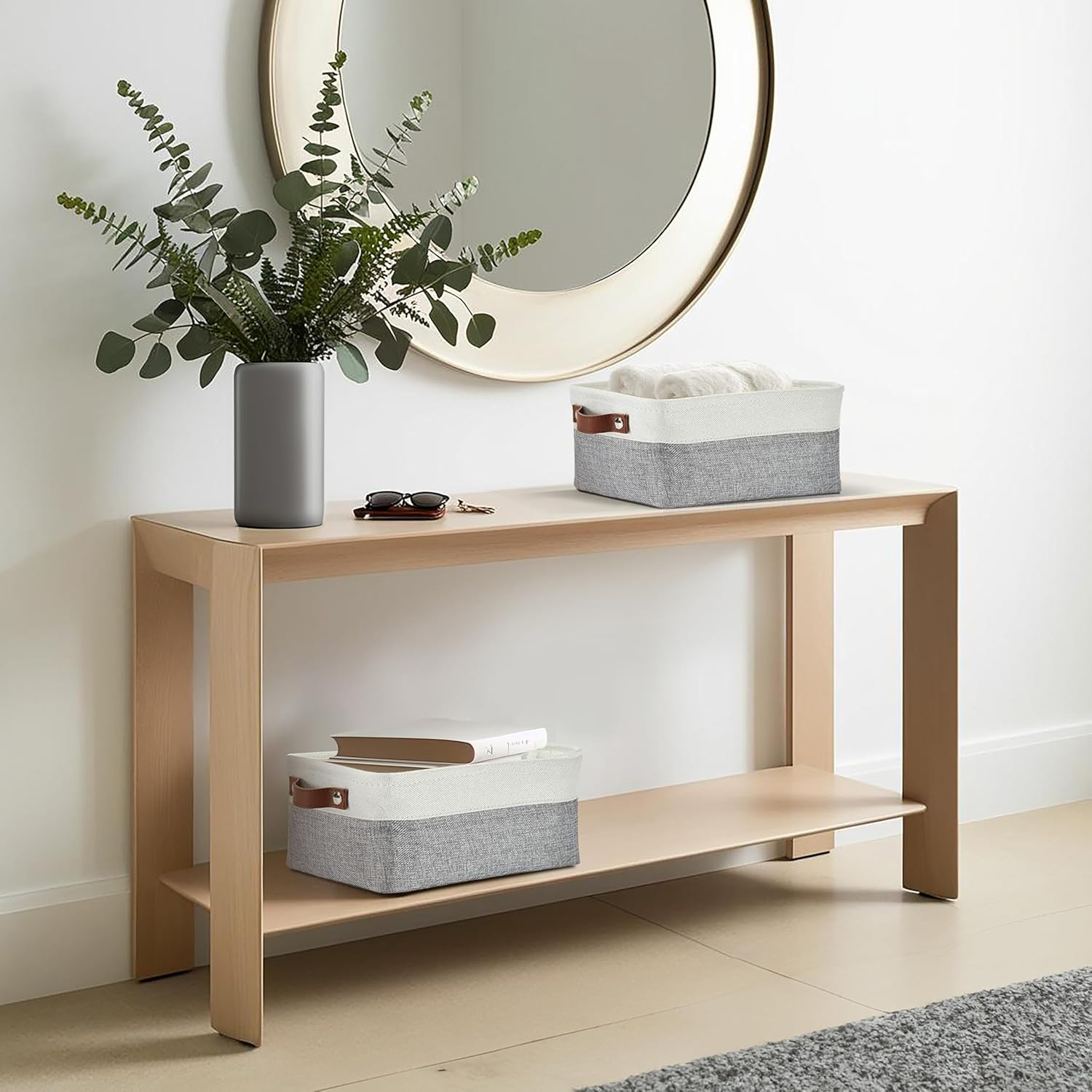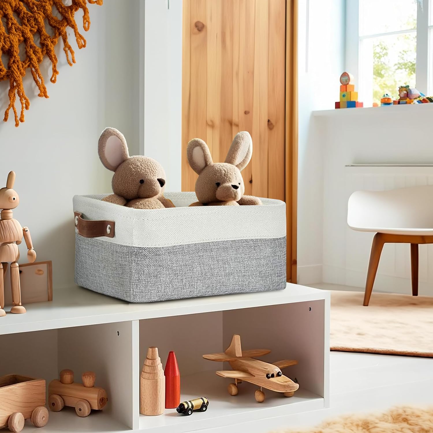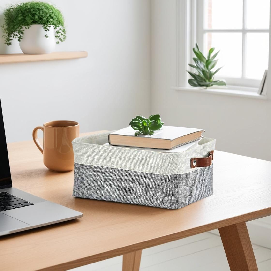 - Durable Design: DECOMOMO's baskets feature a sturdy metal frame, extra thick EVA exterior, polyester interior, 2.5mm MDF fiberboard bottom, and faux leather handles capable of holding up to 15 lbs.