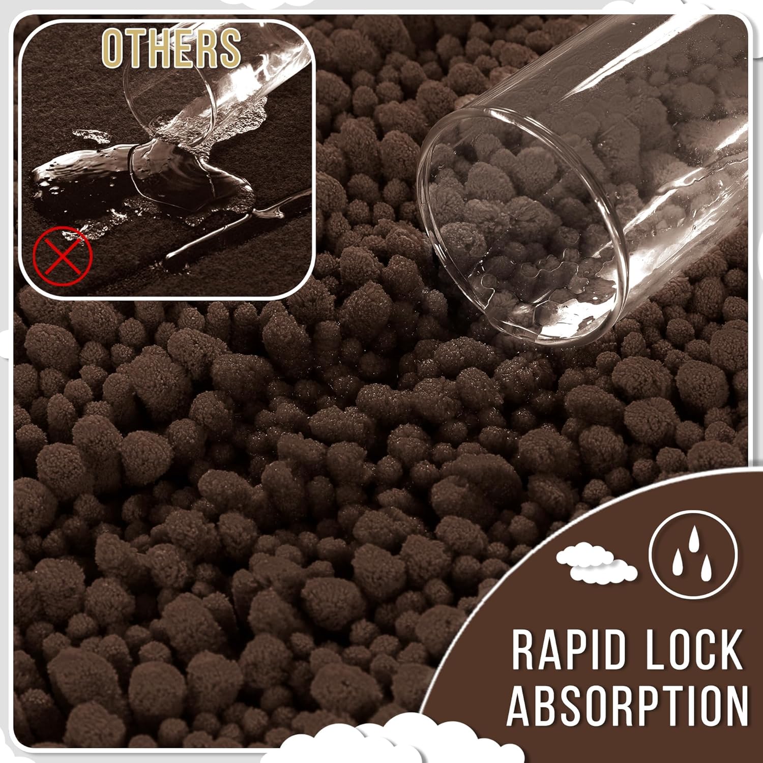 Yimobra Large Bathroom Rugs Non Slip Washable 36x24 Inch - Ultra Soft Absorbent Chenille Bath Mat, Quick Dry Shaggy Floor Carpet for Tub Shower, Brown Home Decor Accessories