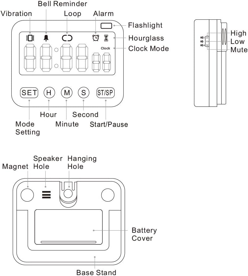- The timer delivers the alarm for one minute when time is up. Vibration, flashlight and loud buzzer sound alarms can function at one time; Vibration can be turned on/off and sound can be adjusted to high, low or mute