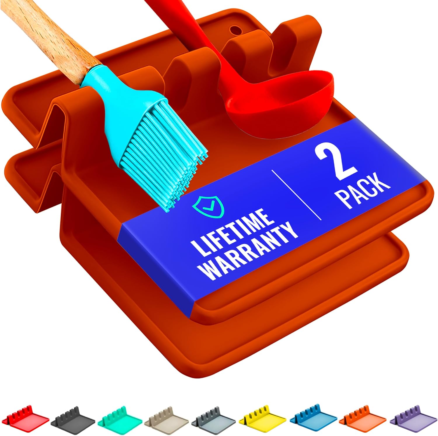 - ENJOY A NICE & CLEAN COUNTERTOP: Start cooking like a pro with our universal silicone utensil rest! Maximize your counter space and minimize mess by keeping all your cooking or grilling utensils neatly organized in your kitchen workspace; You will absolutely love cooking with a Cooler Kitchen silicone spoon holder! ROTATE TWO UTENSIL RESTS! The best part about having two is being able to swap one out for another when it gets dirty!