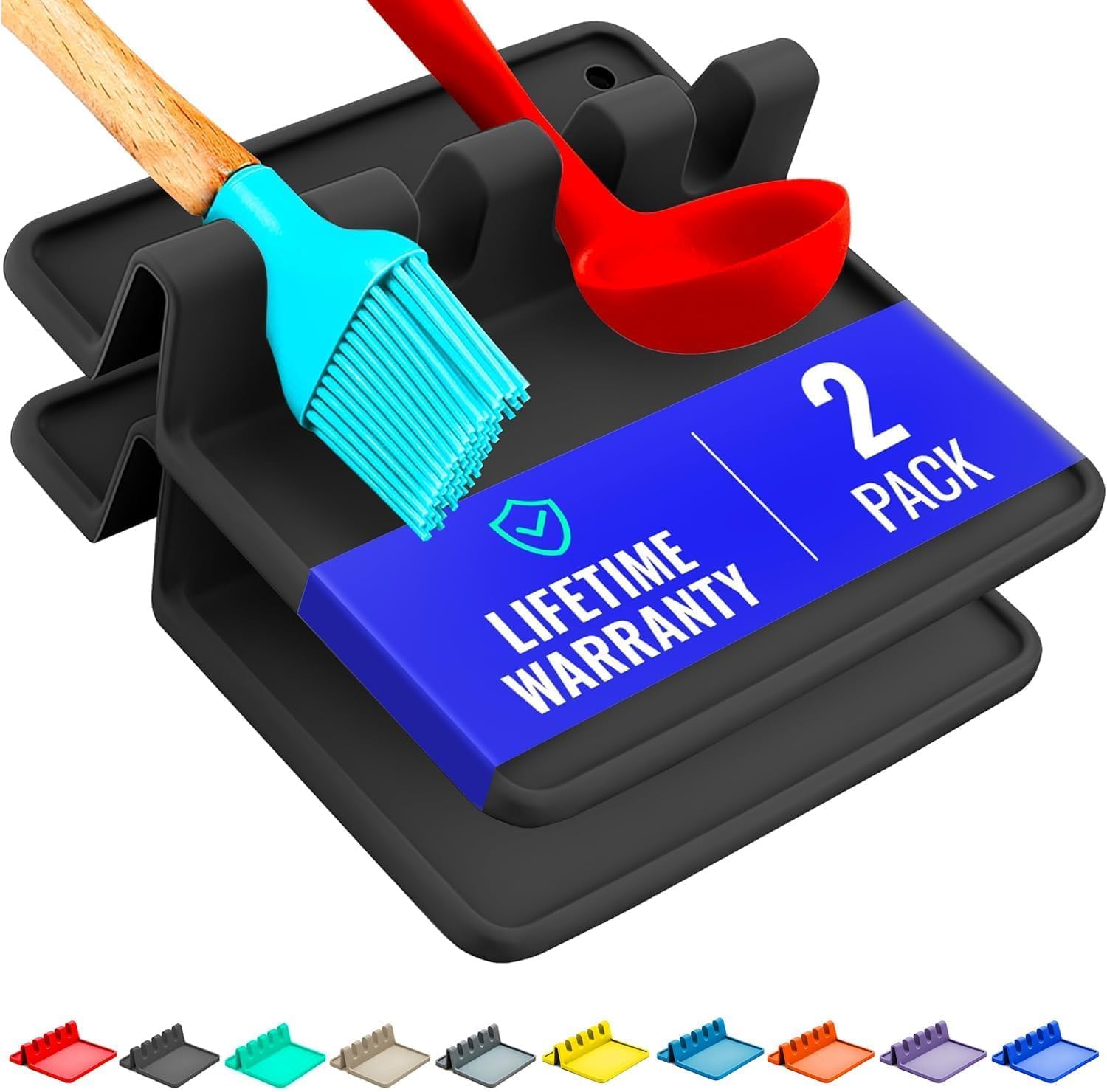 - ENJOY A NICE & CLEAN COUNTERTOP: Start cooking like a pro with our universal silicone utensil rest! Maximize your counter space and minimize mess by keeping all your cooking or grilling utensils neatly organized in your kitchen workspace. You will absolutely love cooking with a Cooler Kitchen silicone spoon holder! ROTATE TWO UTENSIL RESTS! The best part about having two is being able to swap one out for another when it gets dirty!