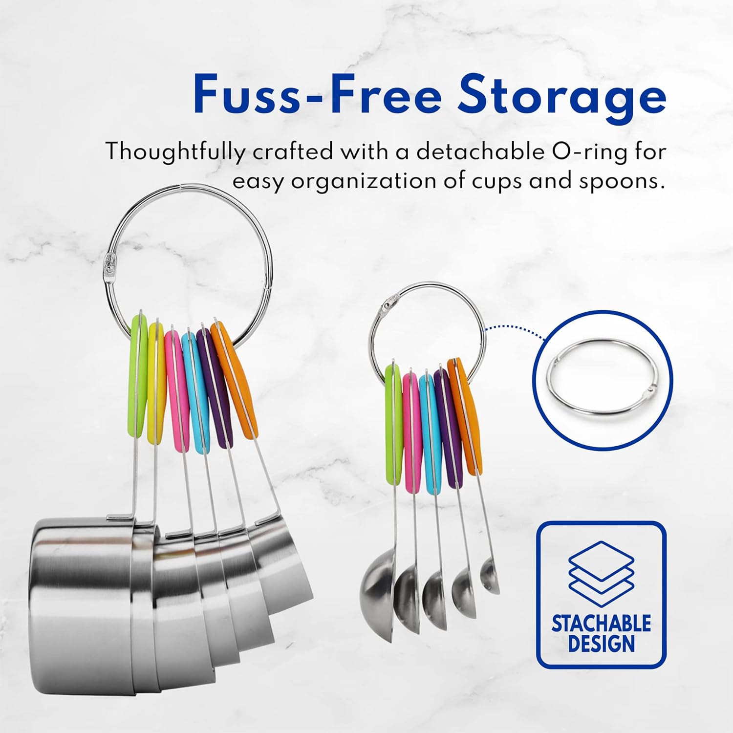 - Stackable Design: Allows each piece to nest inside another to store them in any drawer, cabinet or cupboard