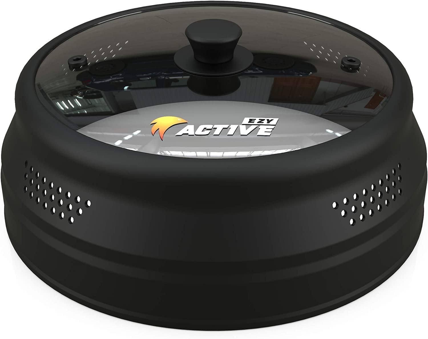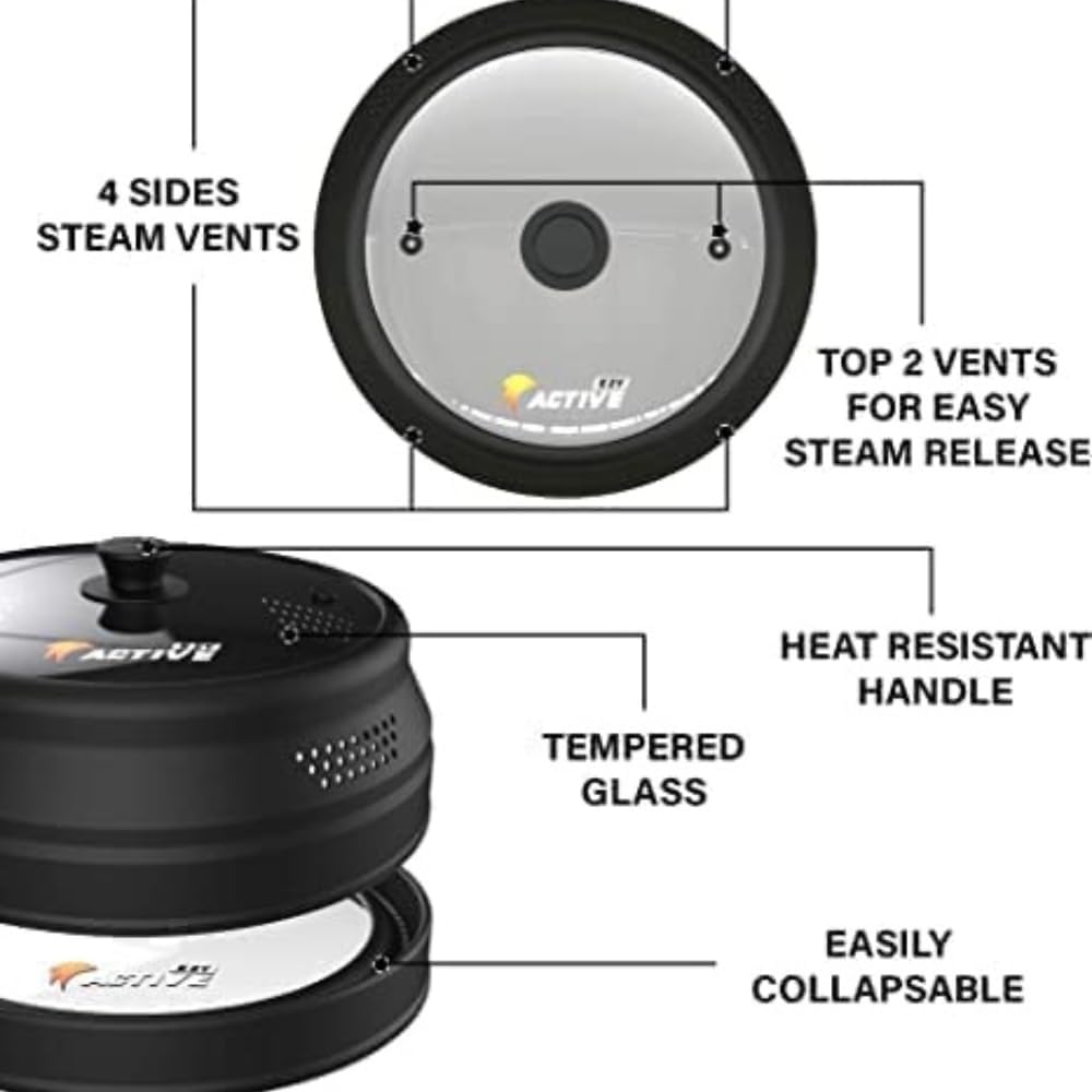 Collapsible Microwave Cover for Food - Silicone and Glass Splatter Guard Lid for 6-12 inch Plates & Bowls, Dishwasher Safe, Heat Resistant, BPA-Free, Black