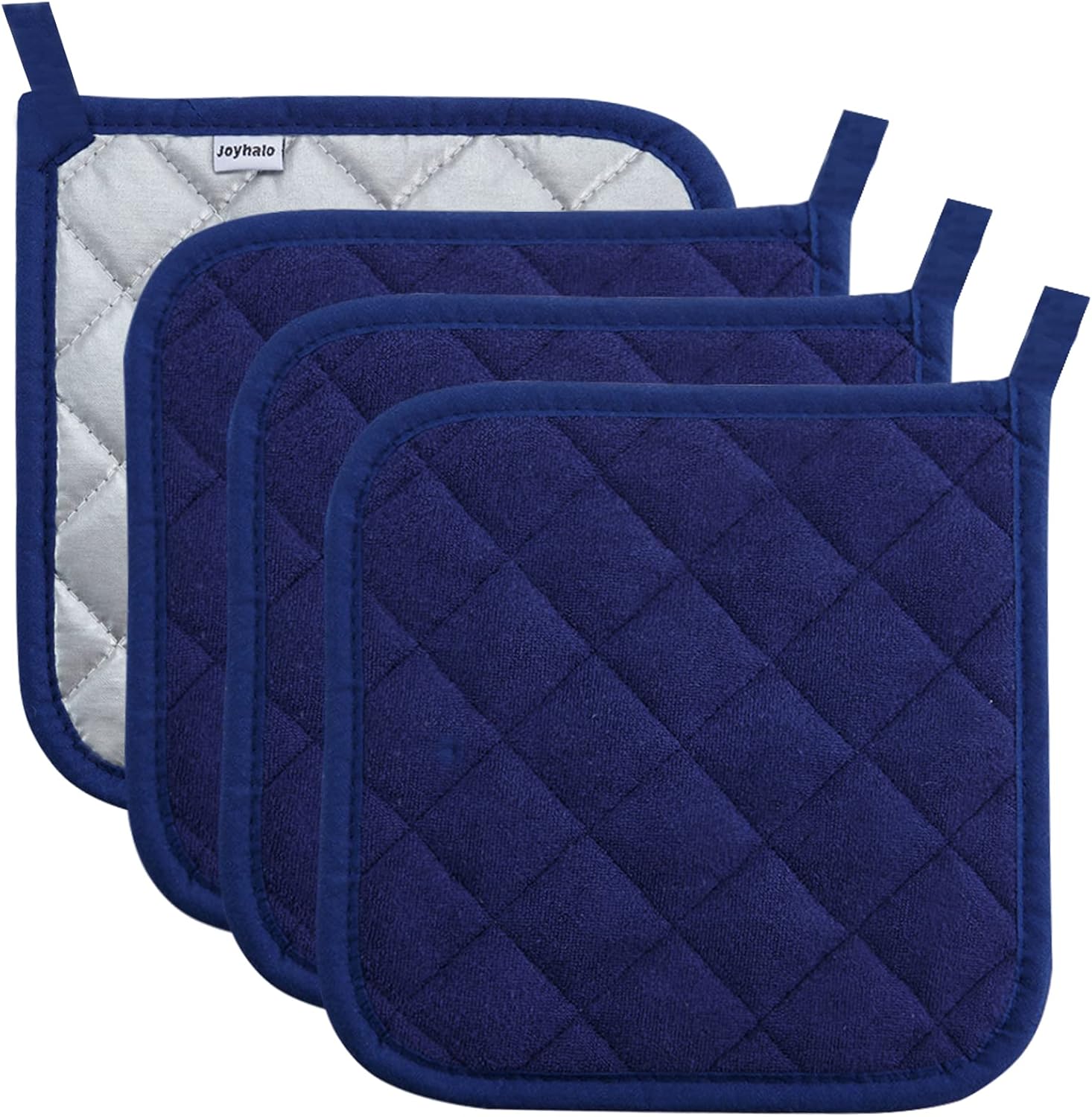 Joyhalo 4 Pack Pot Holders for Kitchen,Cotton Oven Holder with Great Heat Resistance,Non Slip Hot Pads for Kitchen Clearance,Dark Blue