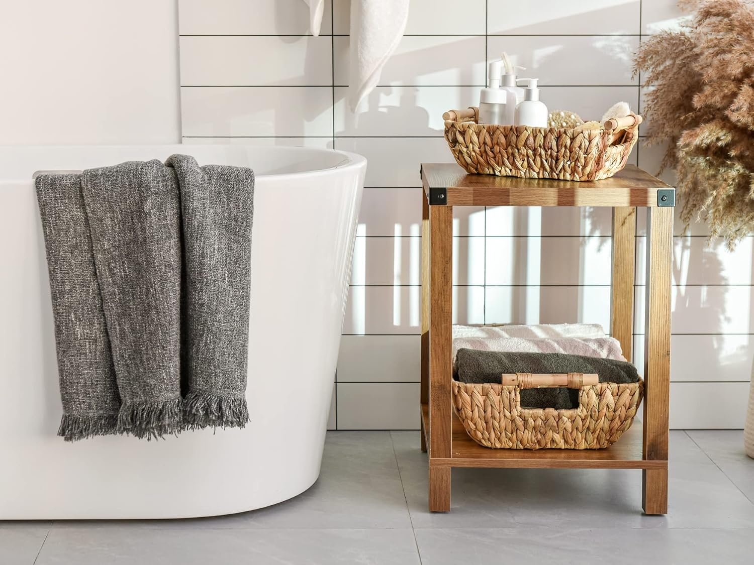 - Versatile water hyacinth baskets for storing fruits, veggies, canned foods, snacks in the kitchen, or towels, blankets, pet toys, and other household items.