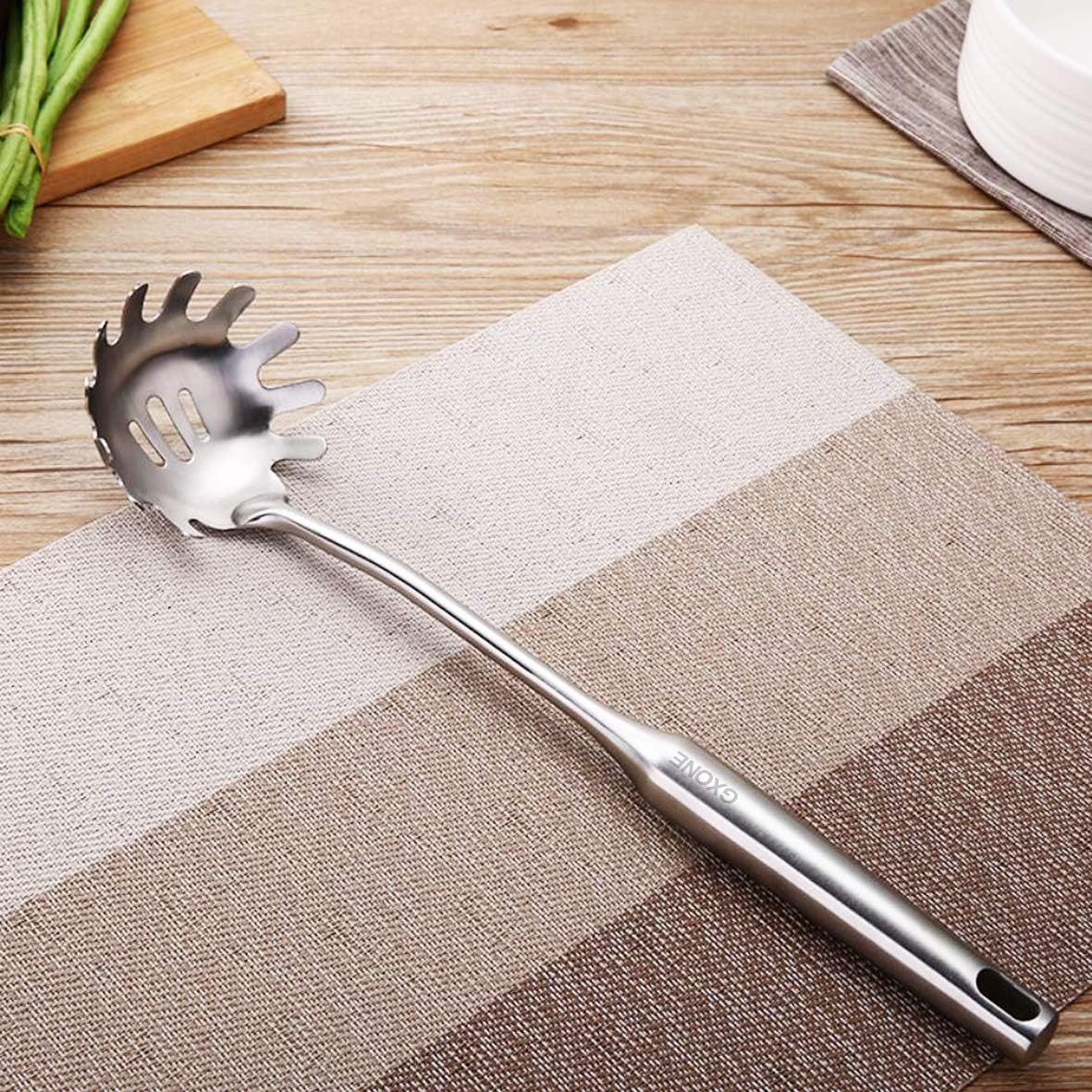 - 【PREMIUM QUALITY】This spaghetti spoon made of high quality thickened 304 stainless steel to ensure long-lasting use and a easy clean, they wont dent, crack, rust, or chip.