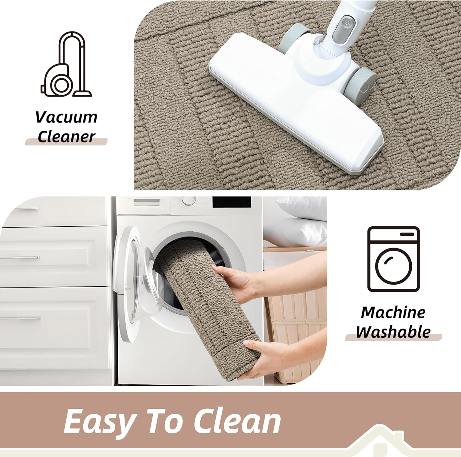 - Easy to Clean: Our kitchen rugs and mats non skid washable are easily cleaned.You can use the vacuum.Also,they are machine washable.Don't worry about fiber falling because of edge locking technology.Our kitchen floor mats can be durable and reusable for long time.Kitchen mat still maintains shape and colors.