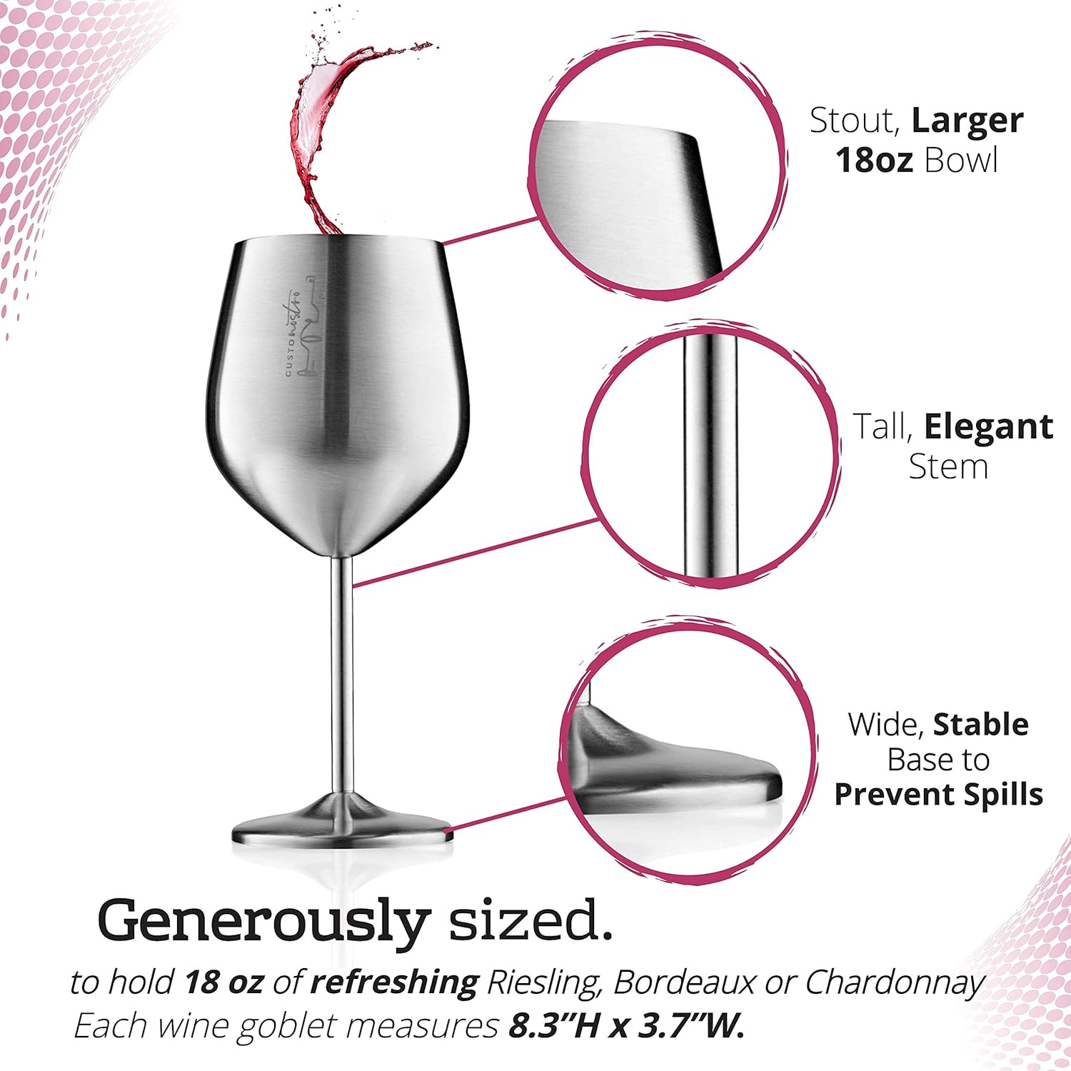 Gusto Nostro Stainless Steel Wine Glass - 18 oz - Cute, Unbreakable Wine Glasses for Travel, Camping and Pool - Fancy, Unique and Cool Portable Metal Wine Glass for Outdoor Events, Picnics (Set of 2)