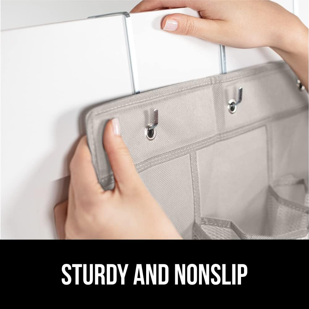 - SLIP RESISTANT DESIGN: organizer features four strong and sturdy hooks that firmly grip the top of doors and are designed to fit seamlessly over most doors