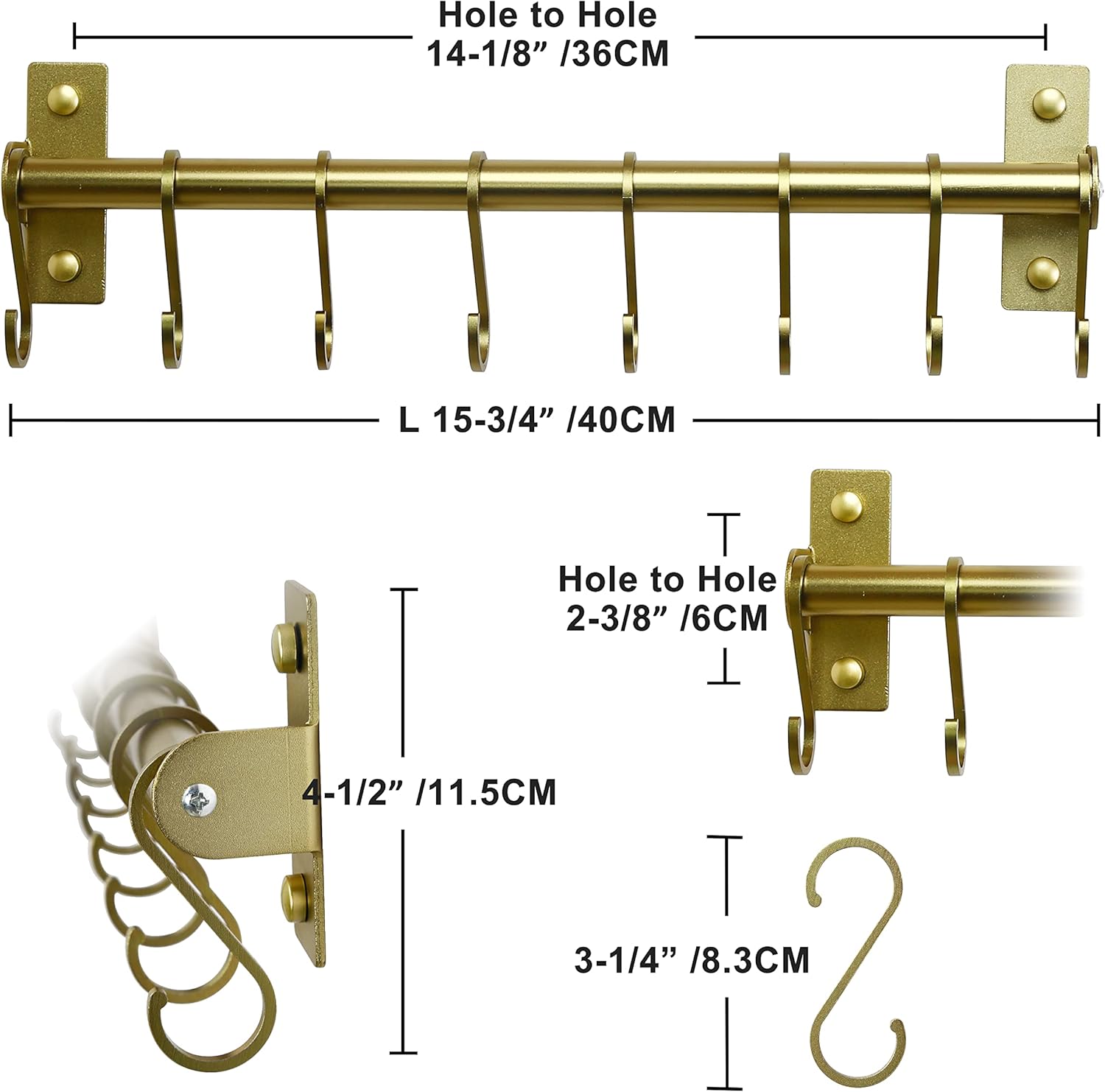 - NOTE: LENGTH = 15 3/4" 【Decorative】 The kitchen utensil hanger comes in beautiful quality and champagne color, simple and stylish, adding an elegant look to your space.