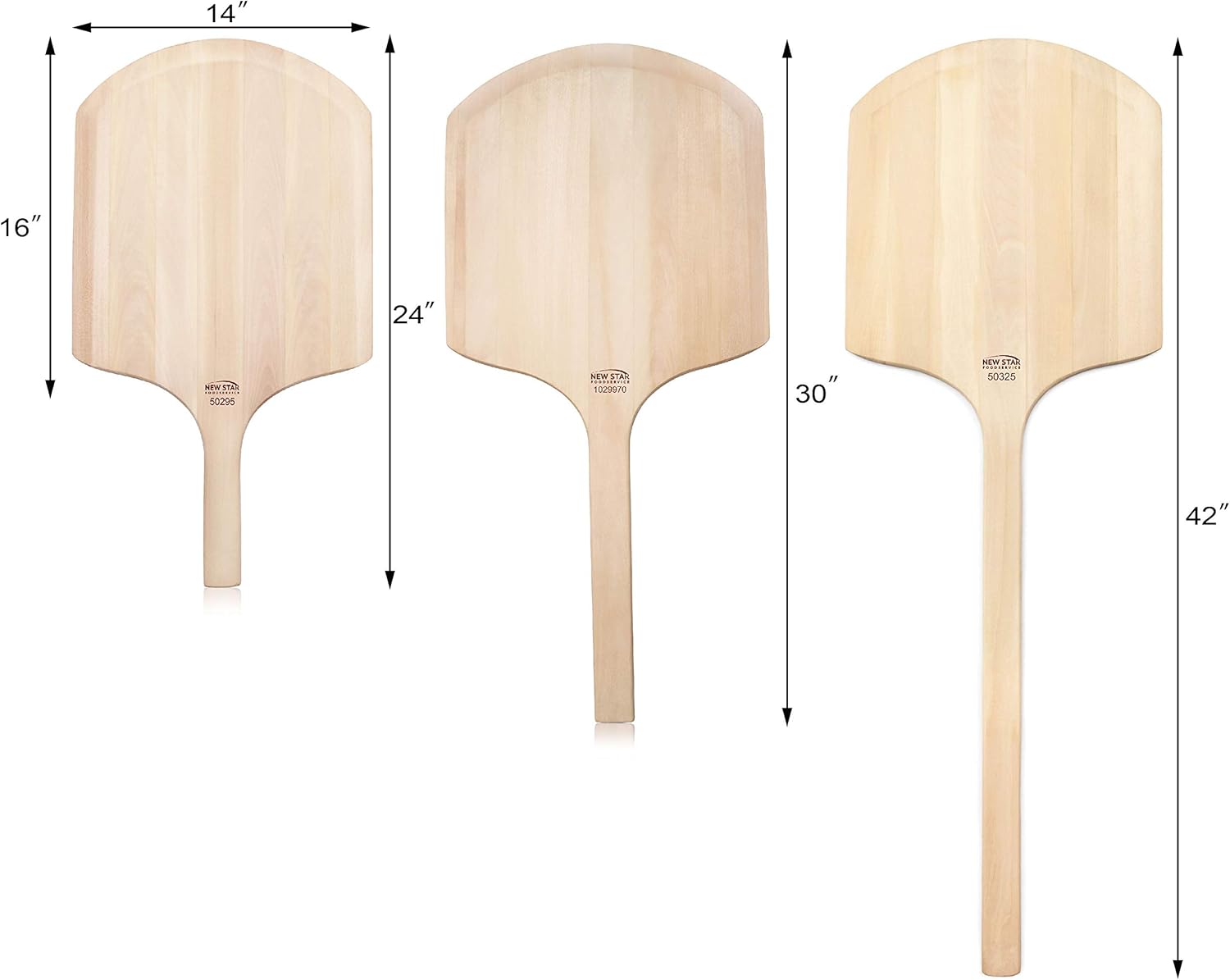 New Star Foodservice 1029970 Restaurant-Grade Wooden Pizza Peel, 16" L x 14" W Plate, with 12" L Wooden Handle, 30" Overall Length