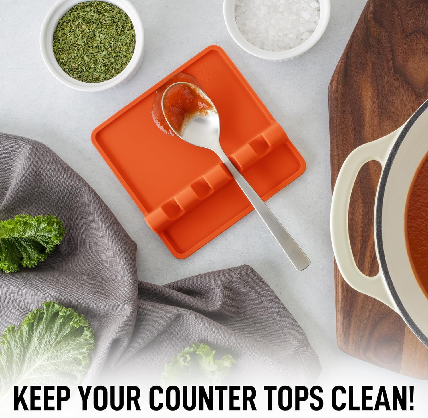 Zulay Kitchen Silicone Utensil Rest with Drip Pad for Multiple Utensils - BPA-Free, Heat-Resistant Spoon Rest & Spoon Holder for Stove Top - Kitchen Utensil Holder for Ladles & Tongs - Orange