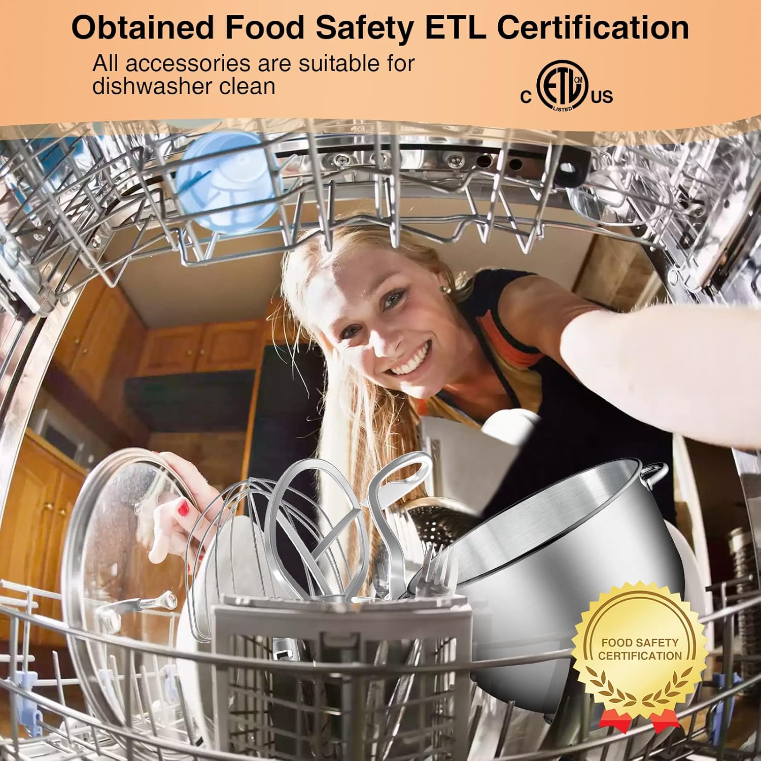 - Special Feature : Low noise, 360° planetary mixing, Vibration absorption design, No displacement during operation, Strong suction cups for more steady, Over-Heating and overload protection, Dishwasher safe, ETL certificate, Adjustable speed control, Tilt head, Mixers, Smart chip controlled, Fully automatic electric stand mixer, 660W powerful high performance pure copper motor, 6.5Qt stainless steel bowl with 2 handle, 6+p speeds rotary knob with pulse function, Full metal gears + ball bearing + belt structure, LED light as power indicator Low noise, 360° planetary mixing, Vibration absorption design, No displacement during operation, Strong suction cups for more ste… See more