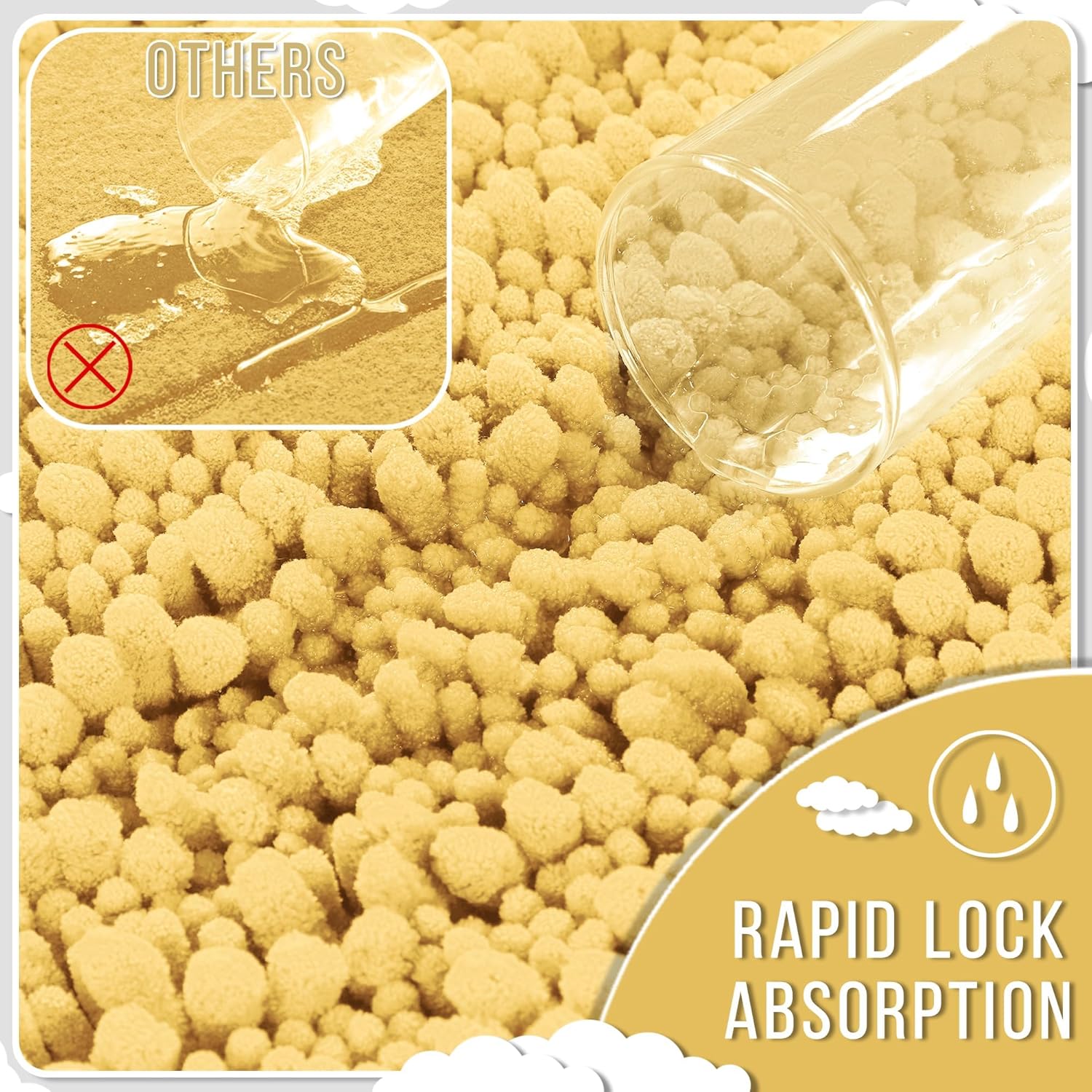 Yimobra Bathroom Rugs Non Slip Washable 32x20 Inch - Ultra Soft Absorbent Chenille Bath Mat, Quick Dry Shaggy Floor Carpet for Tub Shower, Yellow Home Decor Accessories
