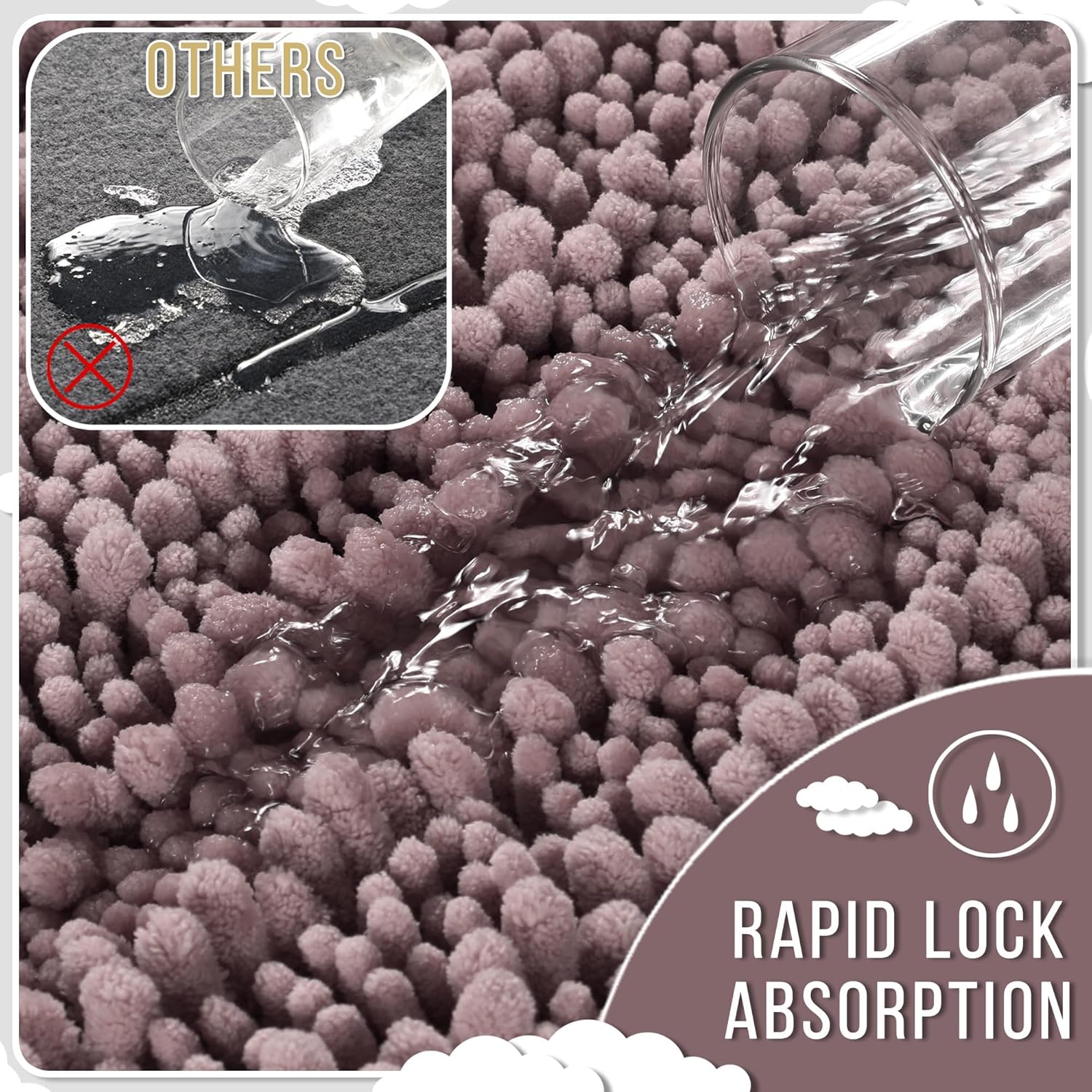 Yimobra Large Bathroom Rugs Non Slip Washable 36x24 Inch - Ultra Soft Absorbent Chenille Bath Mat, Quick Dry Shaggy Floor Carpet for Tub Shower, Mauve Home Decor Accessories