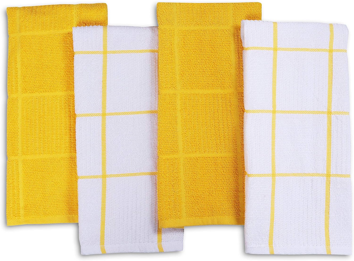 AMOUR INFINI Kitchen Towels Pack of 4 Absorbent, Quick Drying Premium Terry Cotton Dish Towel with Hanging Loop 16x28 Inch Hand & Tea Towels (Yellow)