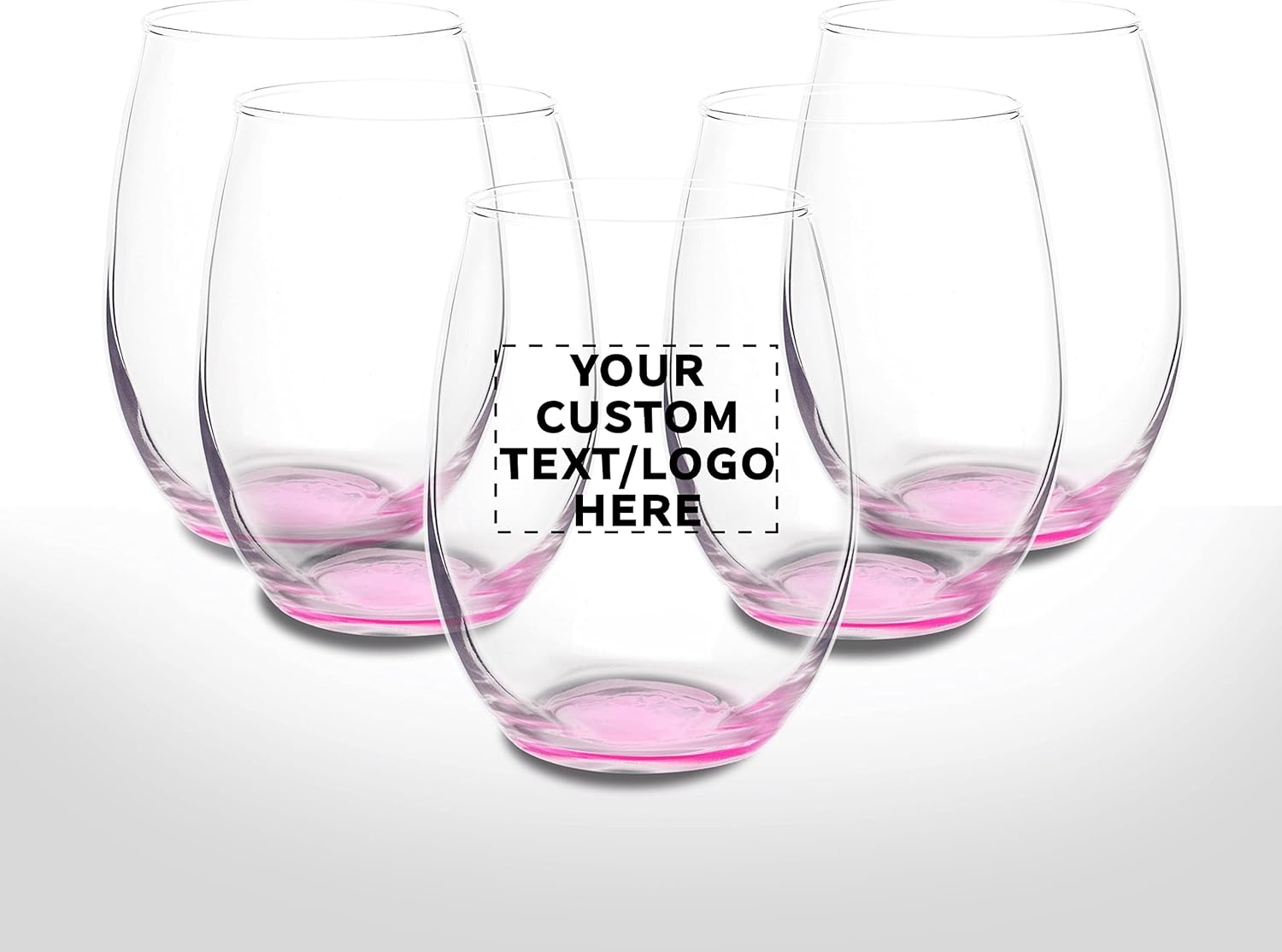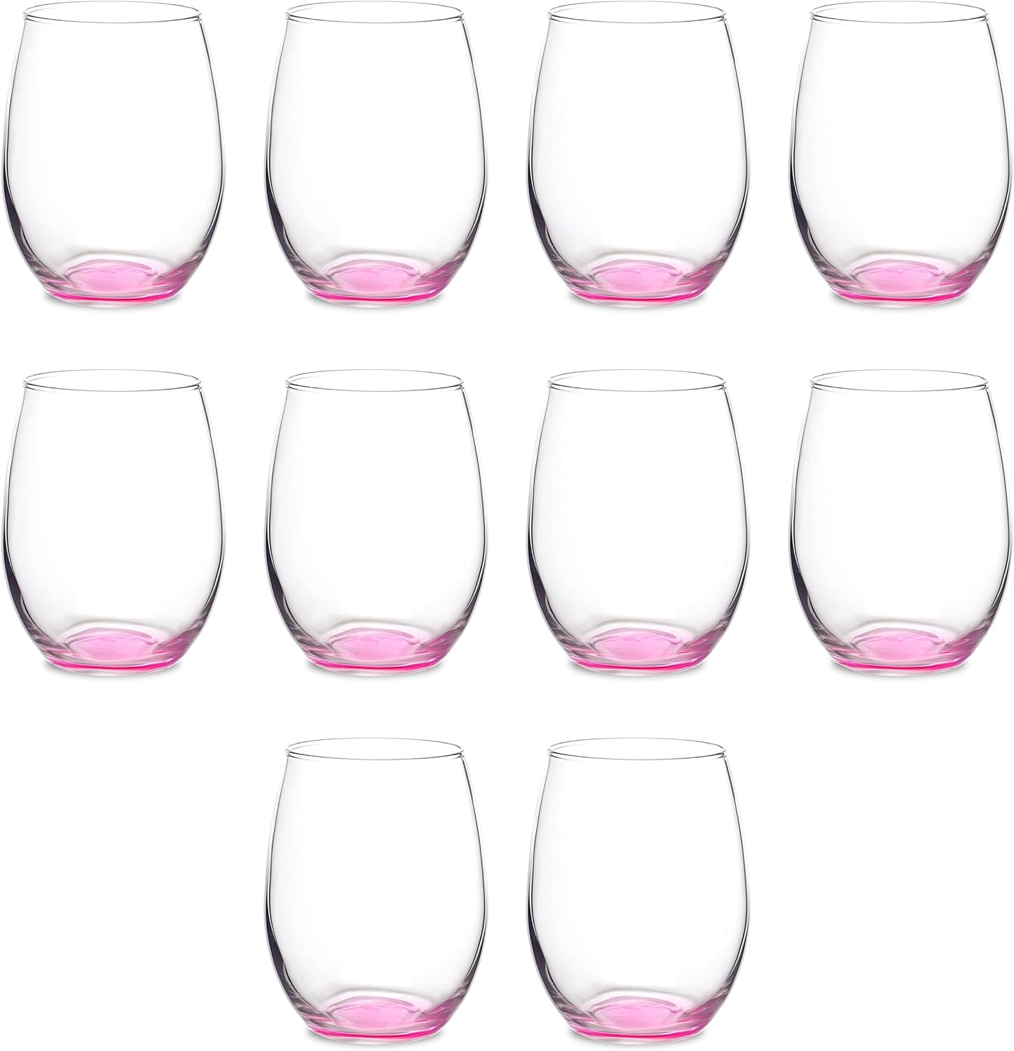 DISCOUNT PROMOS Stemless Wine Glasses in Bulk by ARC Perfection, 15 oz, 10 pack, Red or White Wine Glass Set, Pink