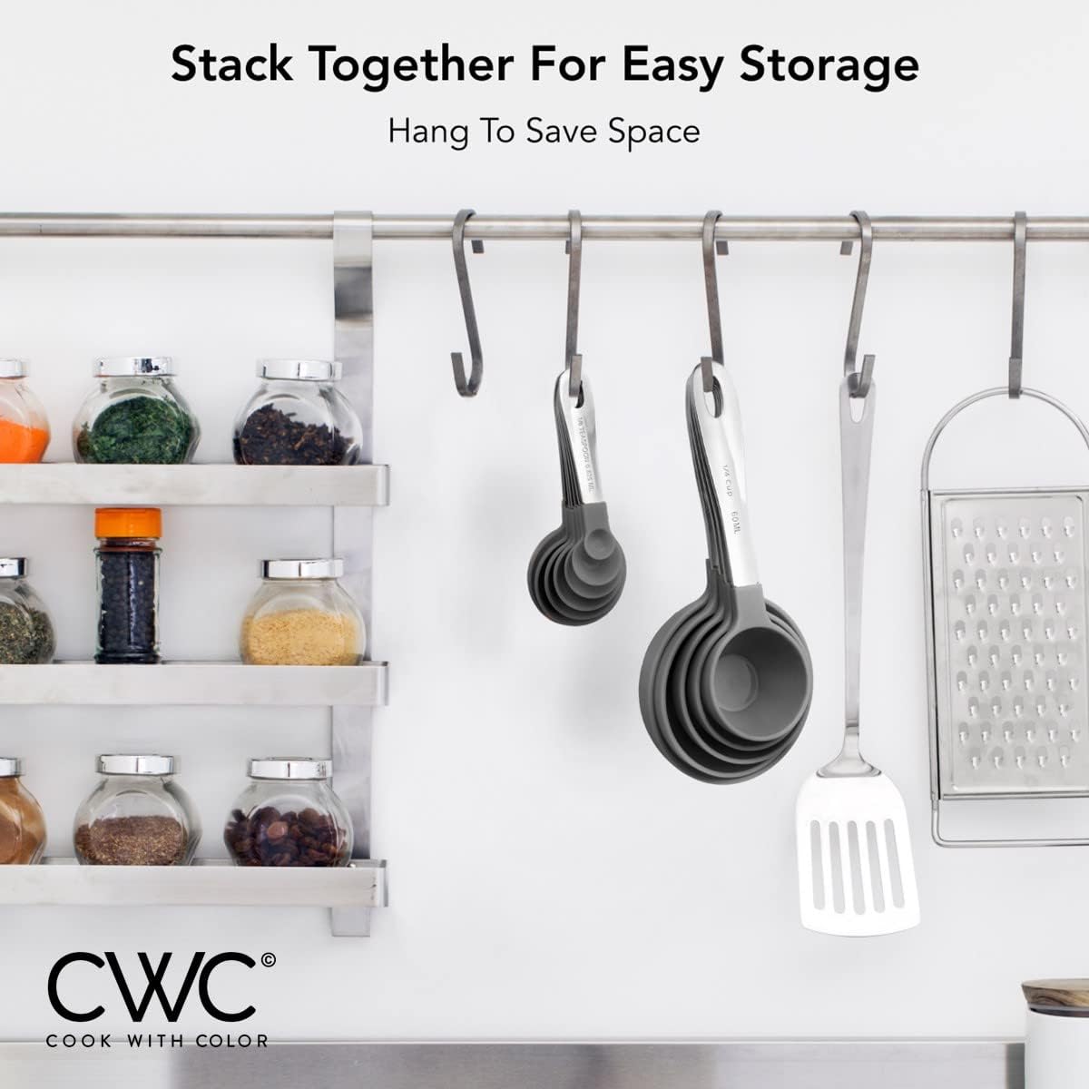 COOK WITH COLOR Measuring Cups Set and Measuring Spoon Set, Stainless Steel Handles, Nesting Kitchen Measuring Set, Liquid Measuring Cup Set, 12 PC Stainless Steel, Gray