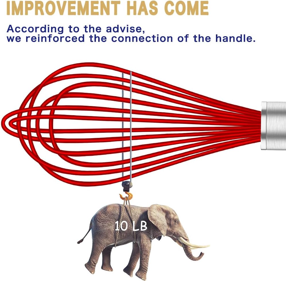 Silicone Rubber Whisk,Premium Whisks For Cooking Non Scratch,Stainless Steel & Silicone Wisk For Nonstick Cookware Pans, High Heat Resistant kitchen Whisks set of 3,Red