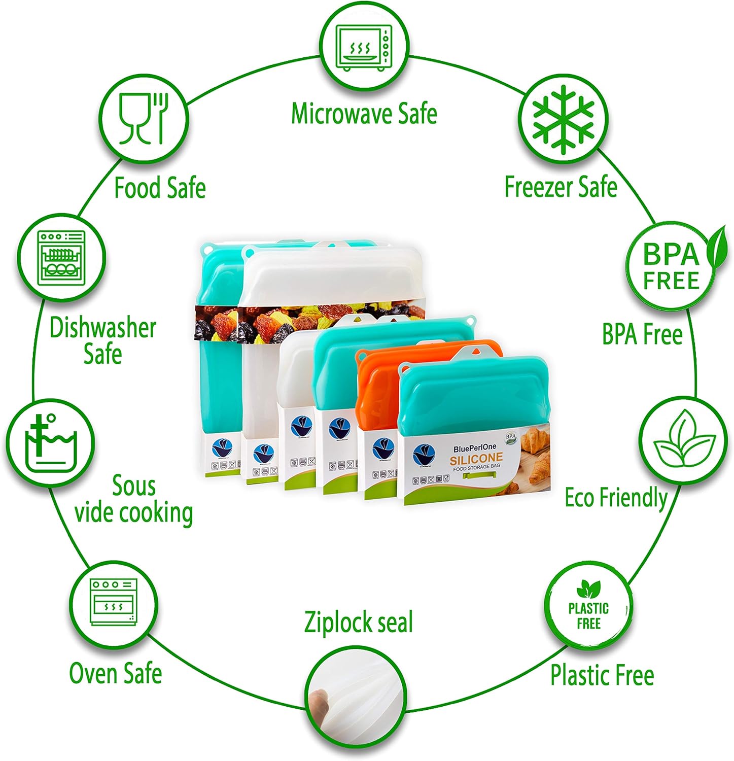 - π± Oven / Microwave and Freezer safe β These food-grade & and BPA-free reusable food storage bags are durable, healthy, and odorless. It is dishwasher safe (either on the top or the bottom rack), freezer safe, and oven safe up to 400 F (200 C). To avoid rapid pressure buildup, keep bags slightly open when heating in the microwave or the oven.