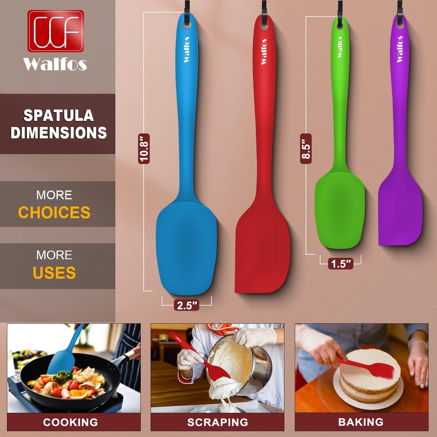 - 【600°F Highly Heat Resistant, BPA Free!】WALFOs spatulas are made of premium food grade silicone,BPA Free, 600°F Heat Resistant,Non-stick surface,Whether cooking,Bake Royal,scraping, decorating or mixing use walfos spatula,which are are safe,good for your health and easy on all of your cookware.
