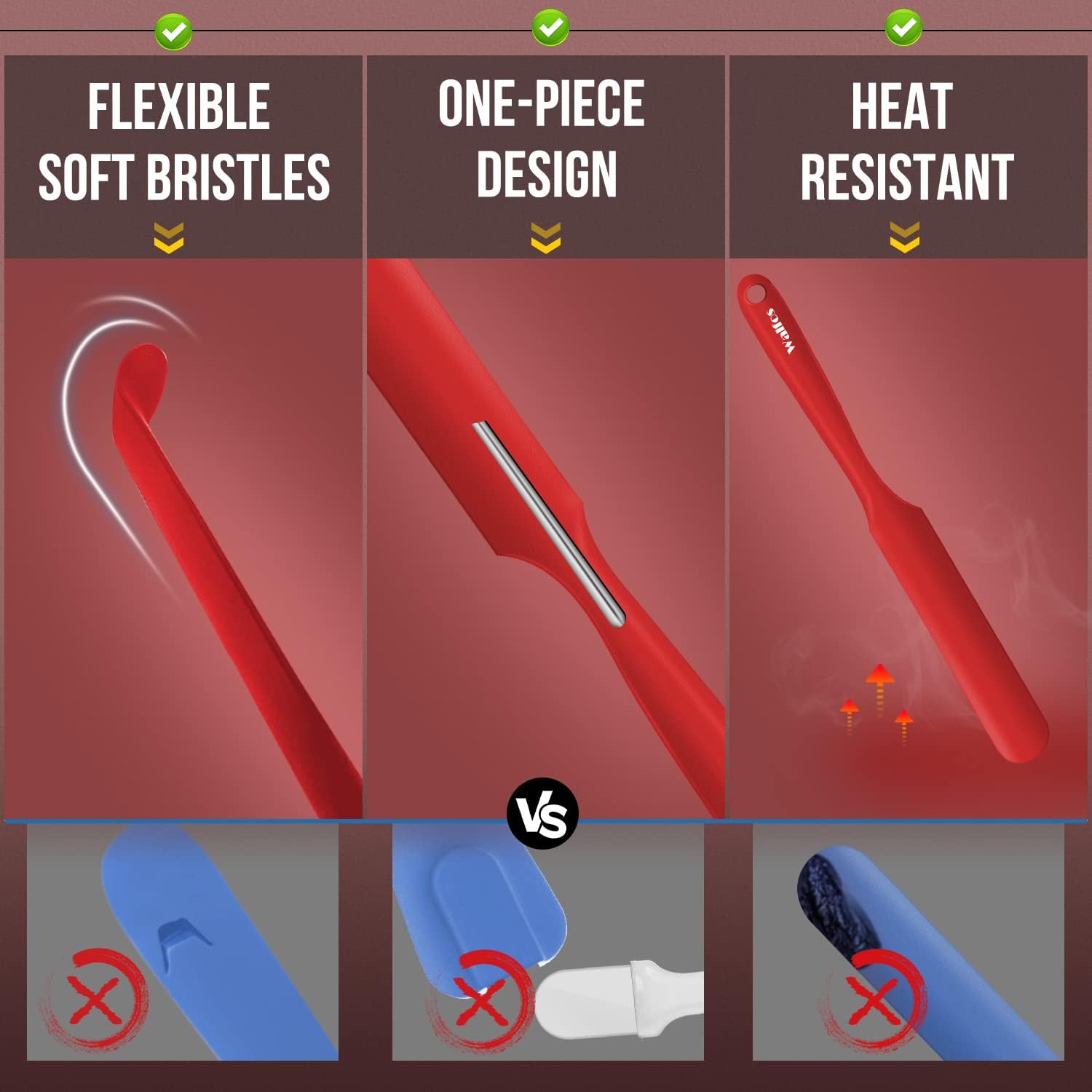 - An Internal Stainless Steel Core lechnology:The strong stainless steel won't break easy like cheap plastic spatula. WALFOS baking spatula can hold up to the demanding use of home cooks, continue to perform day after day