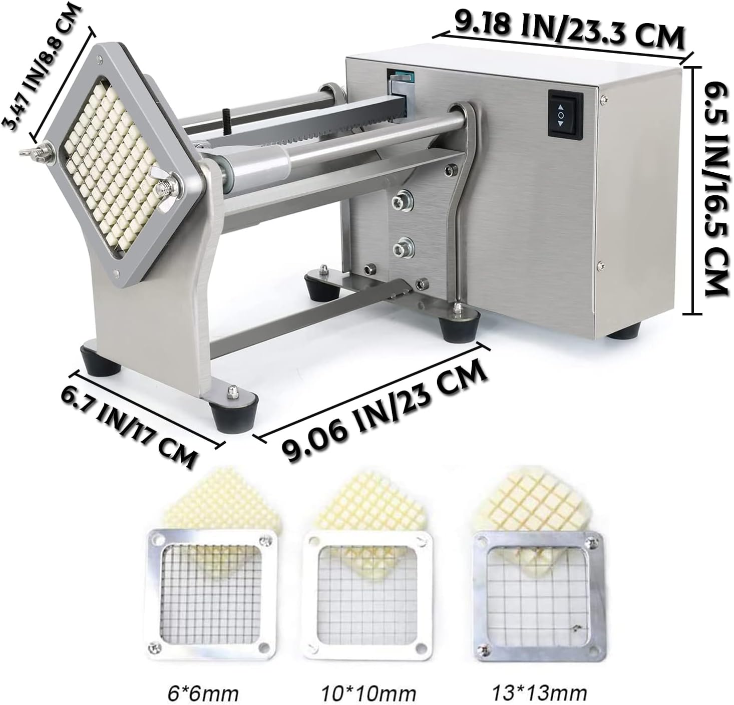 - EFFICIENT CUTTER--The electric potato cutter could help you cutting potato to french fry shape in a few second which reduce you manpower and save your time,super high efficiency.