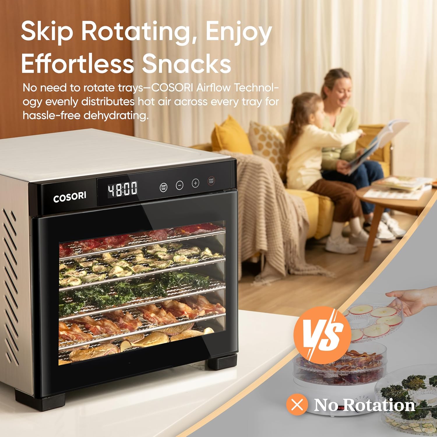 COSORI Food Dehydrator for Jerky, Large Drying Space with 6.48ftΒ², 600W Dehydrator Machine, 6 Stainless Steel Trays, 48H Timer, 165Β°F Temperature Control, Yogurt Maker, for Herbs, Meat, Fruit