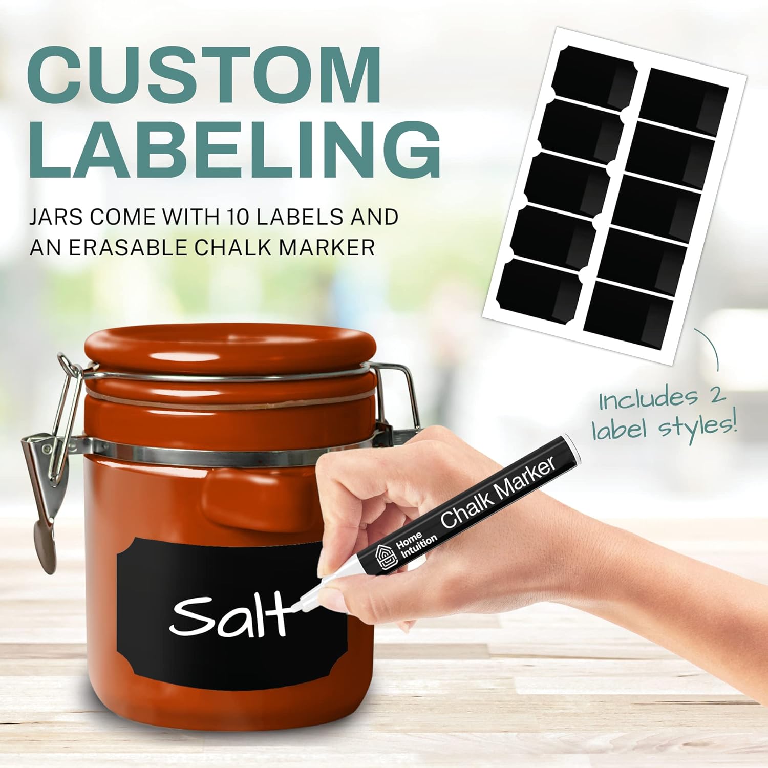 Home Intuition Ceramic Kitchen Canisters Set of 4 with Wooden Spoon Set – Airtight Containers, Metal Latches for Utmost Freshness – Sugar, Coffee, Flour, Tea & More | Rust