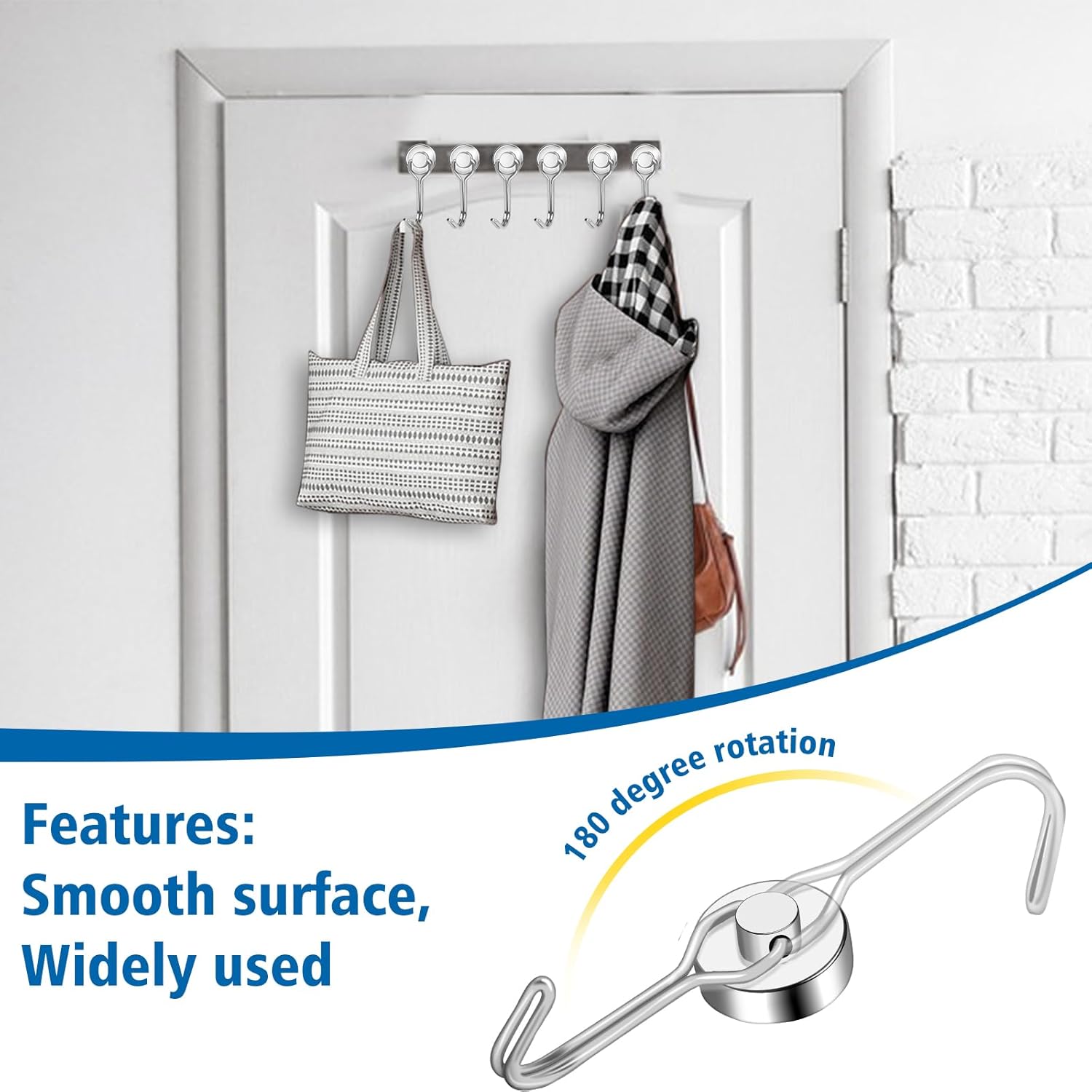 BAVITE Swivel Swing Magnetic Hooks New Upgraded, Refrigerator Magnet Hook,Strong Neodymium Magnets, Perfect for Refrigerator and Other Surfaces, Silver 30lb 12pack