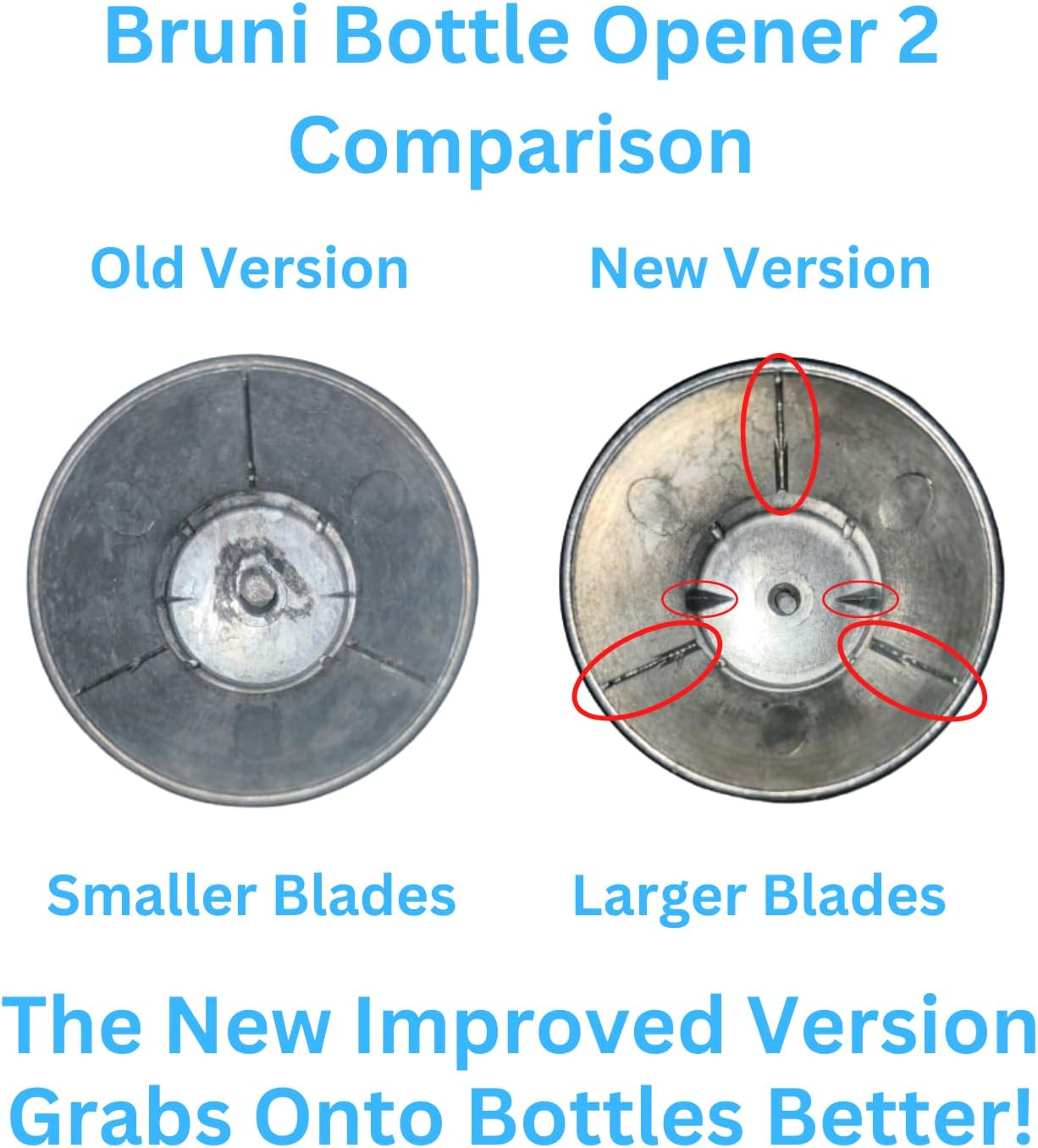- Easy to Use Bottle Opener – The Bruni bottle opener 2 has been designed to take the frustration out of trying to open jars, beer, soda plastic top jars wine accessories, pill bottles, pop bottles or any kind of lids, can or caps with no effort required. This simple to use bottle opener is perfect for even people who have weak hands. Our single unit bottle opener can open bottles and caps from 1 inch up to 1-7/8 inches in diameter, NO need to have a bunch of different openers.