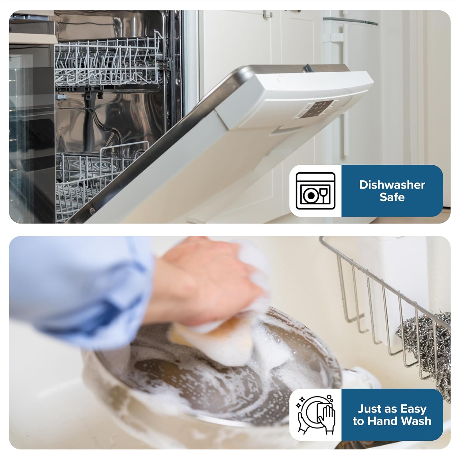 - DURABLE DESIGN FOR EFFICIENT COOKING: Our roasters feature a durable hard anodized nonstick aluminum construction, an excellent conductor and distributor of heat to allow for even and consistent cooking results, and the interior features triple-layer non stick coating for superior food release and durability; our broiling pan is oven friendly and compatible with gas, electric, ceramic, and halogen cooktop surfaces; dishwasher safe, hand washing is recommended **Not compatible with induction**