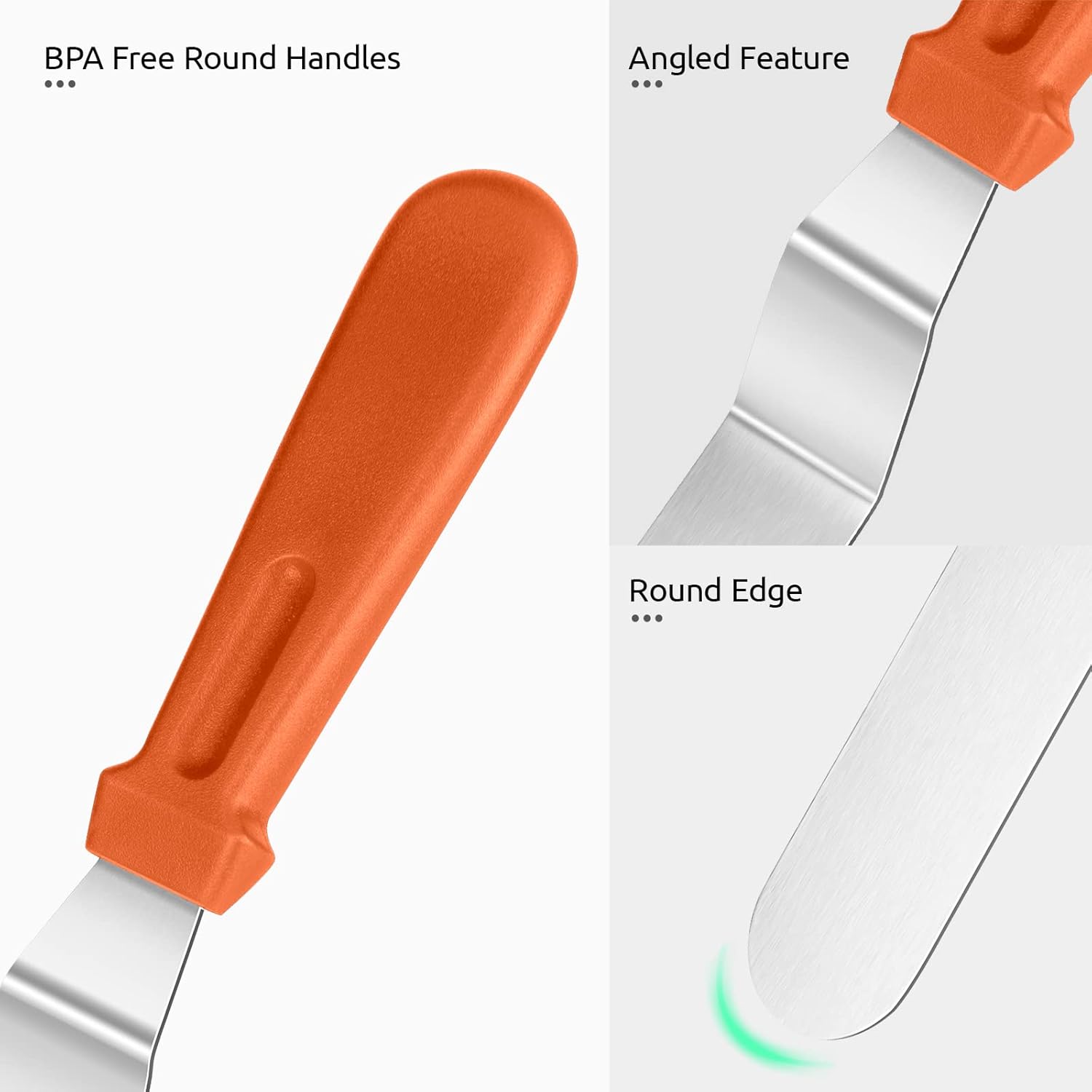 Icing Spatula, U-Taste Offset Spatula Set with 6", 8", 10" Blade,Stainless Steel Angled Cake Decorating Frosting Spatula Set of 3 (Orange)