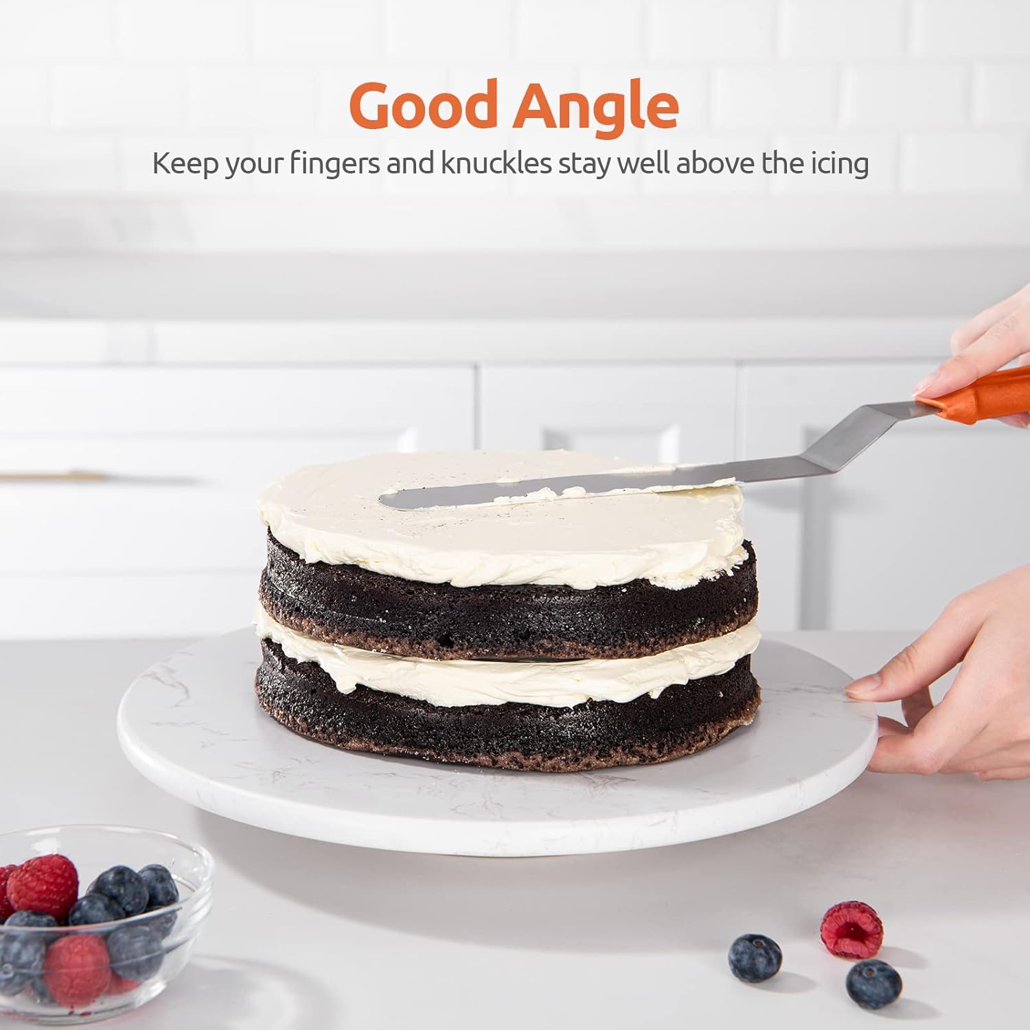 - [Versatile Angled Feature]The angled feature keep your fingers away from the butter on the cake.