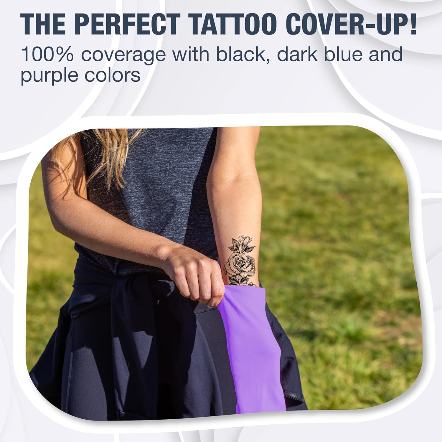 - Fabric type : Only BLACK, DARK BLUE and PURPLE arm sleeves COMPLETELY cover a TATTOO!