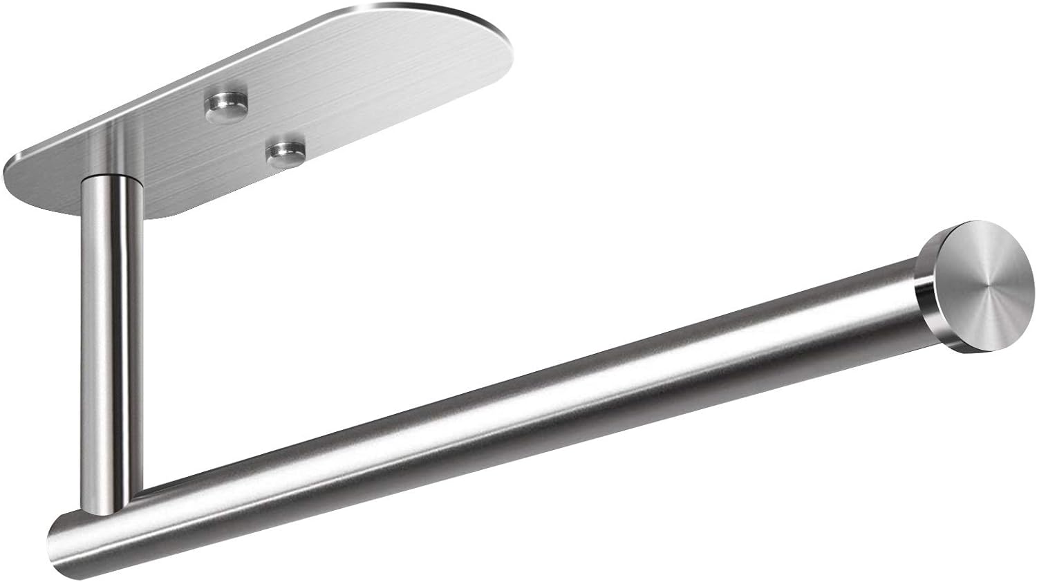 VAEHOLD Adhesive Paper Towel Holder Under Cabinet Mount, Wall Mounted Paper Towel Roll Holder for Kitchen Paper Towel, Stainless Steel(Silvery)