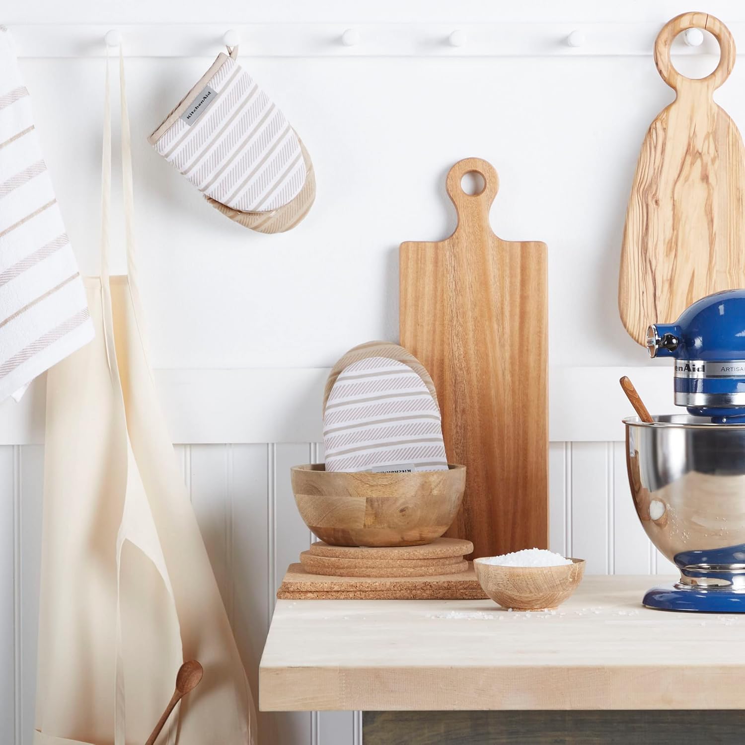 - SET OF TWO β Shield your hands while handling hot cookware. This set includes two (2) Kitchen Aid Albany Mini Mitts, each measuring 5.5" W x 8" L.