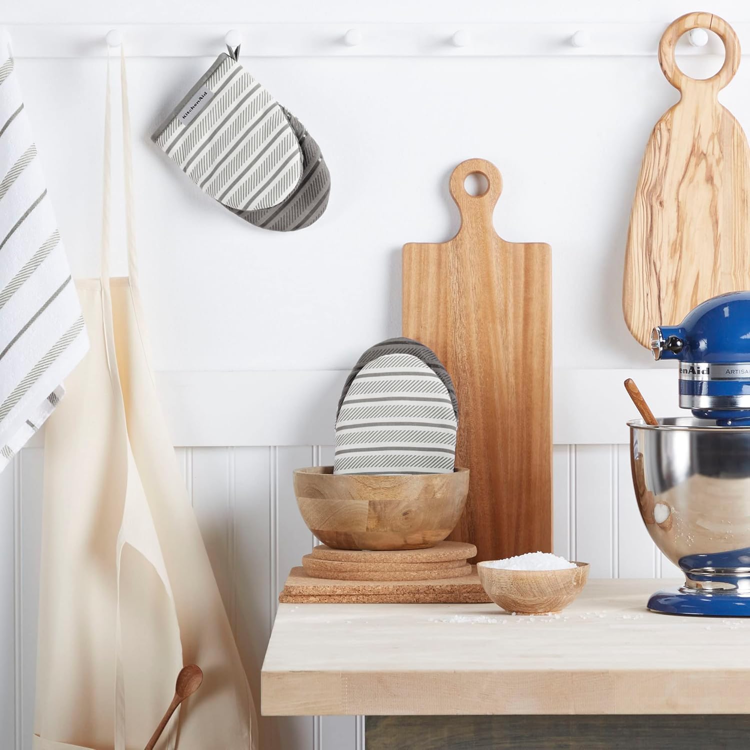 - SET OF TWO β Shield your hands while handling hot cookware. This set includes two (2) Kitchen Aid Albany Mini Mitts, each measuring 5.5" W x 8" L.