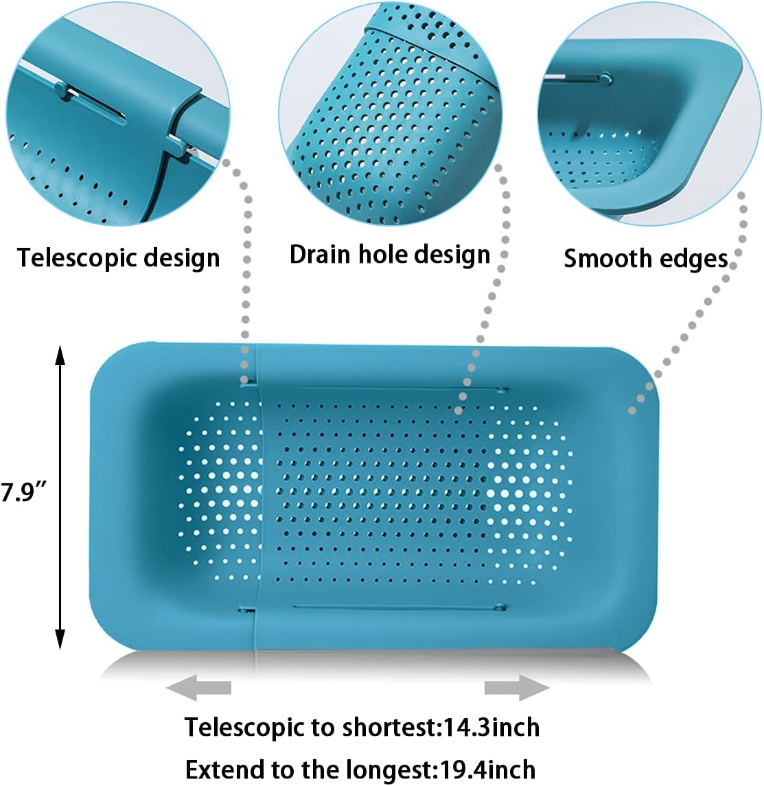 - Retractable Design: Use retractable colander, easy to adjust the size, The colander can be expanded from 14.3 inches to 19.4 inches,free expansion and contraction, flexible use, so it can perfectly fit different size sinks