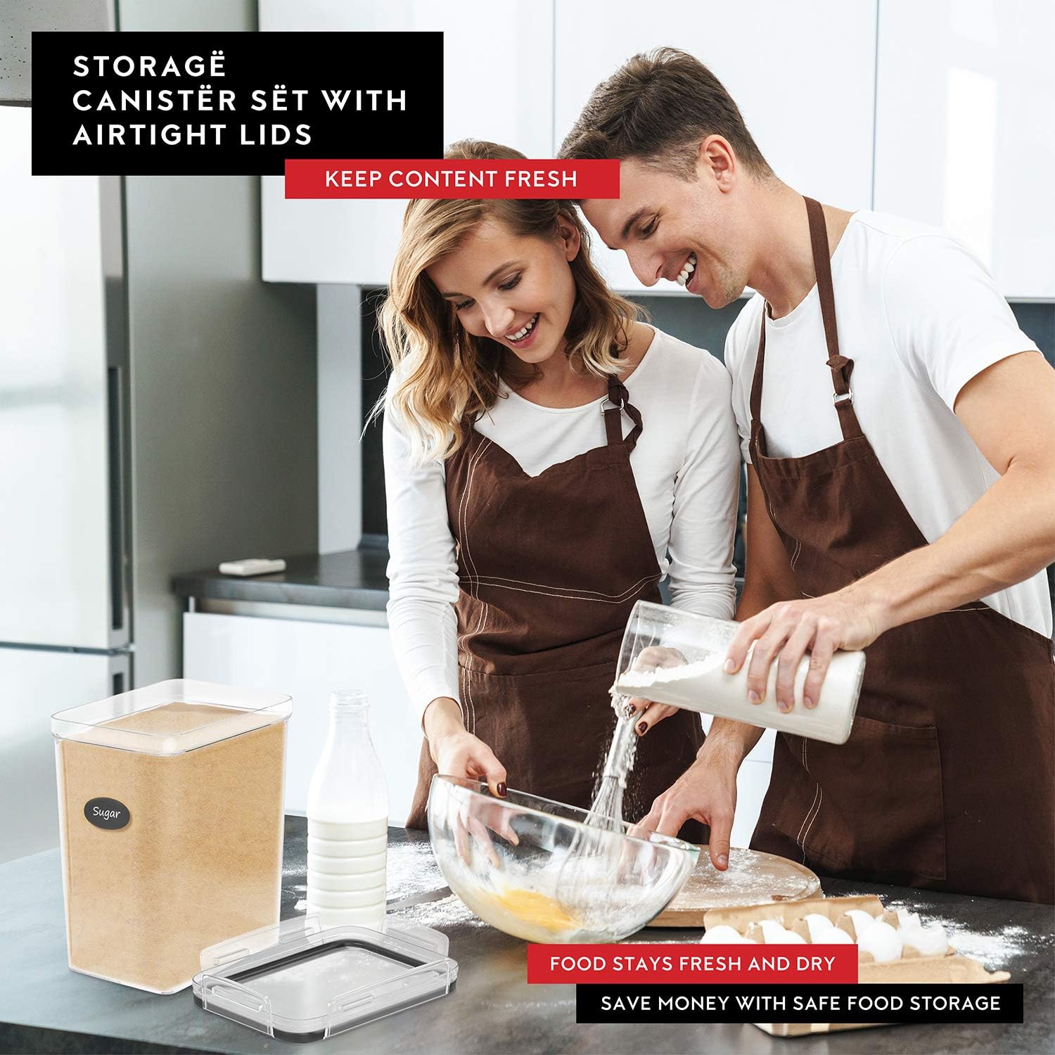 DWËLLZA KITCHEN Large Flour Sugar Storage Containers Set of 2; 175 FL. oz - 5.2L Plastic Airtight Food Storage Containers with Lids for Kitchen Pantry Organization - Food Containers, Labels & Marker