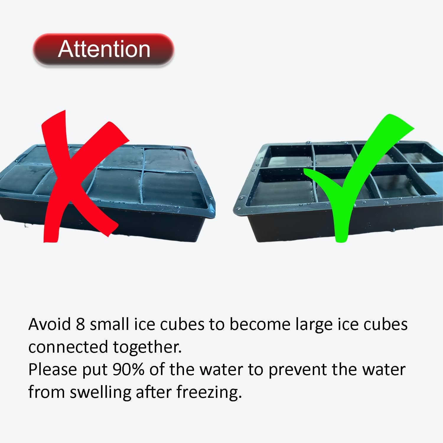 - 【Large 2" Square Ice Cubes】Crafting 8 ice cubes, each nearly 2 inches, our large whiskey ice cubes mold is perfect for Old Fashioned, Scotch, Bourbon, or Blended Whiskey. These substantial cubes melt slowly, providing an extended chill without dilution, enhancing your drink enjoyment