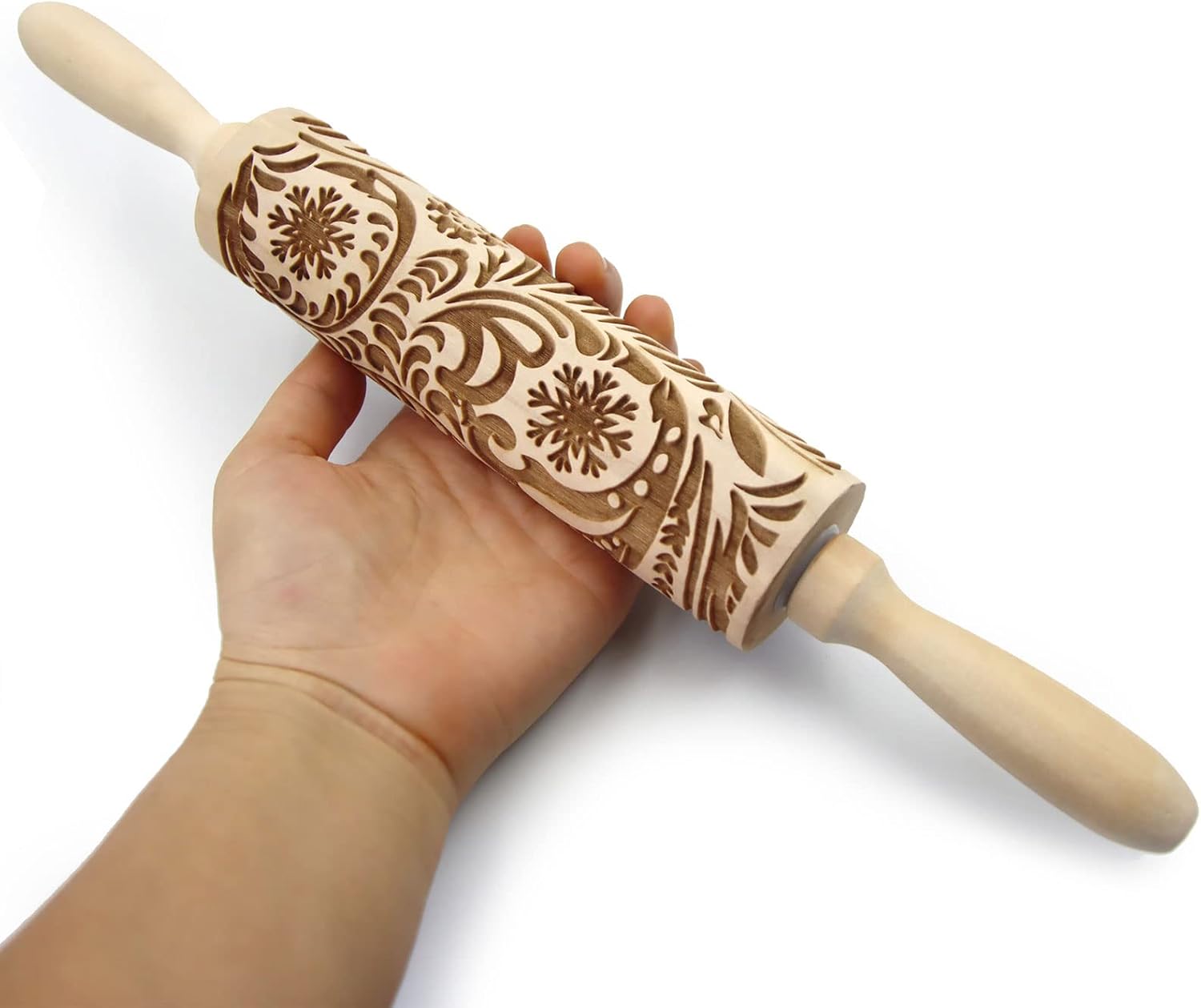 - 【Beautiful Embossed rolling pins】Embossed rolling pins made from durable and moisture-resistant natural wood. Our christmas rolling pins are engraved with classical flower vine pattern and sanded.