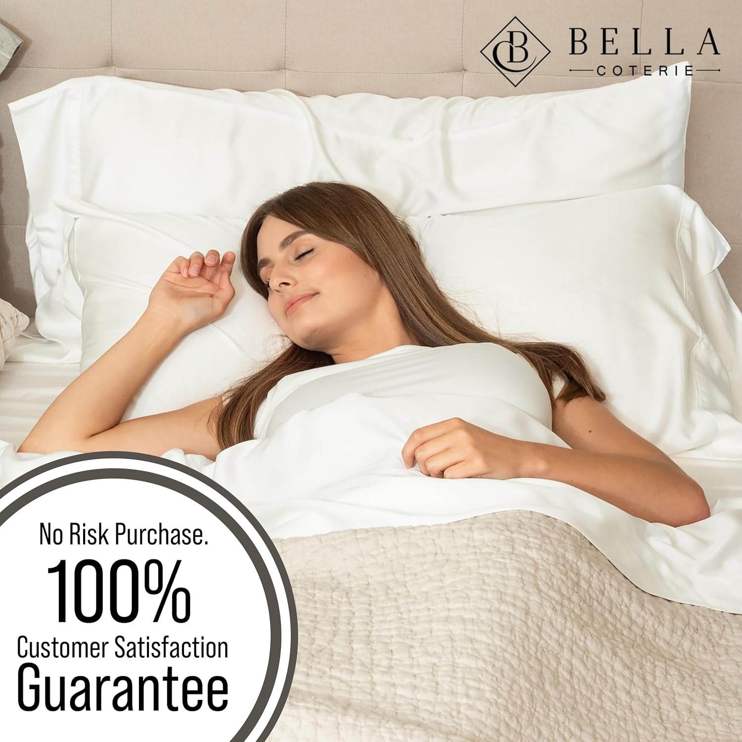 Bella Coterie Luxury Bamboo Viscose Queen Size Sheet Set | 100% Organically Grown | Ultra Soft | Cooling for Hot Sleepers | 18" Deep Pocket [White]