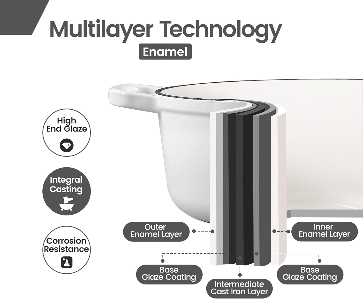 Enameled Cast Iron Covered Dutch Oven with Dual Handle, Dutch Ovens with Lid for Bread Baking, Safe to 500 degrees, 3.5 Quart, White