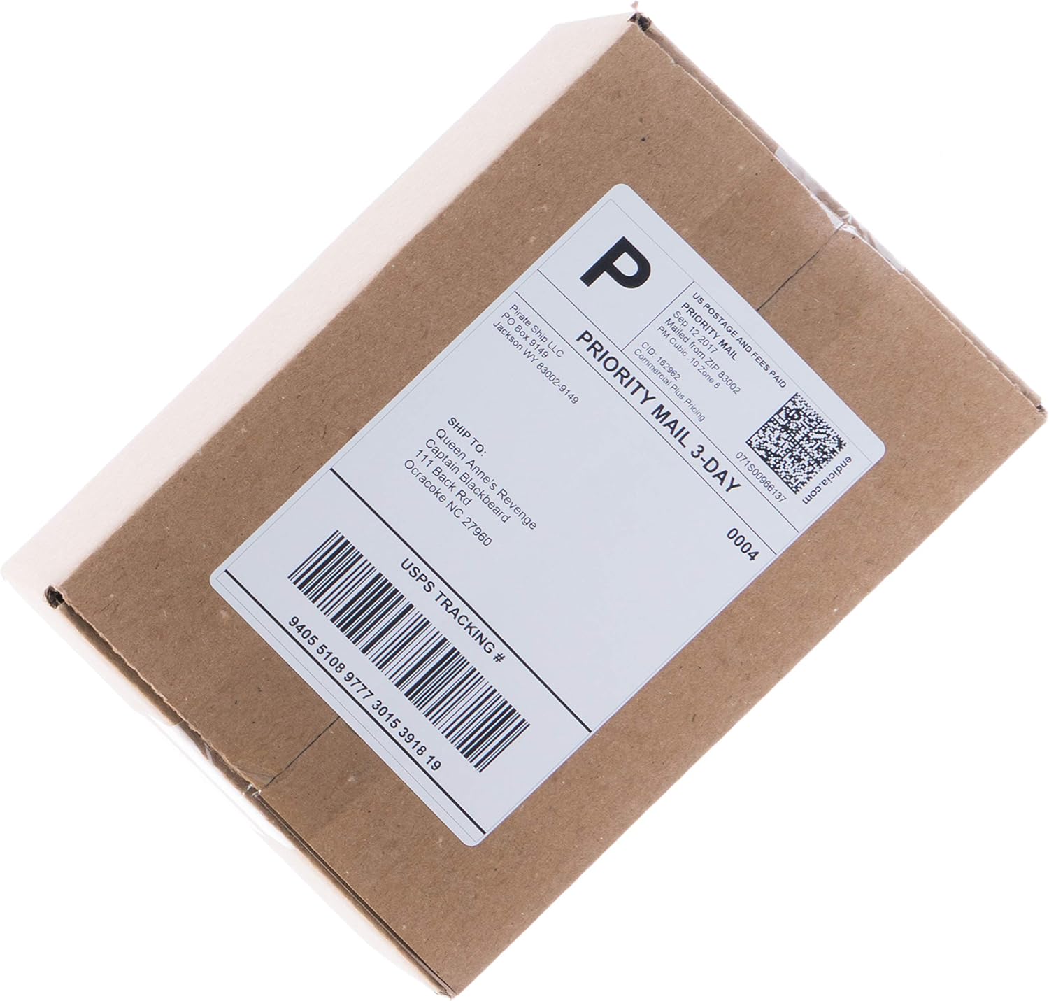 - Label size: 4'' x 6'', 1" core, with perforated line