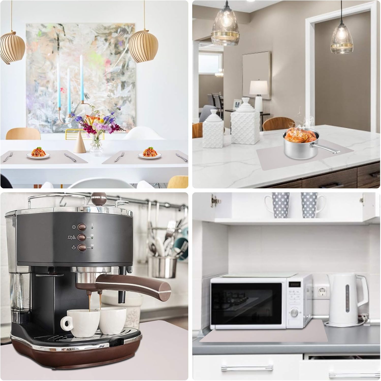- Size :Sized at 25"x 17"x 0.03" (Length x Width x Thickness), large enough to protect your counter top, it can be placed under the microwave, air fryer, induction stove, toaster oven, coffee maker etc.