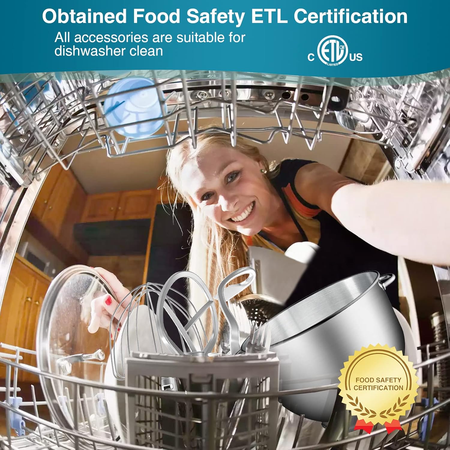 - Special Feature : Low noise, 360° planetary mixing, Vibration absorption design, No displacement during operation, Strong suction cups for more steady, Over-Heating and overload protection, Dishwasher safe, ETL certificate, Adjustable speed control, Tilt head, Mixers, Smart chip controlled, Fully automatic electric stand mixer, 660W powerful high performance pure copper motor, 6.5Qt stainless steel bowl with 2 handle, 6+p speeds rotary knob with pulse function, Full metal gears + ball bearing + belt structure, LED light as power indicator Low noise, 360° planetary mixing, Vibration absorption design, No displacement during operation, Strong suction cups for more ste… See more