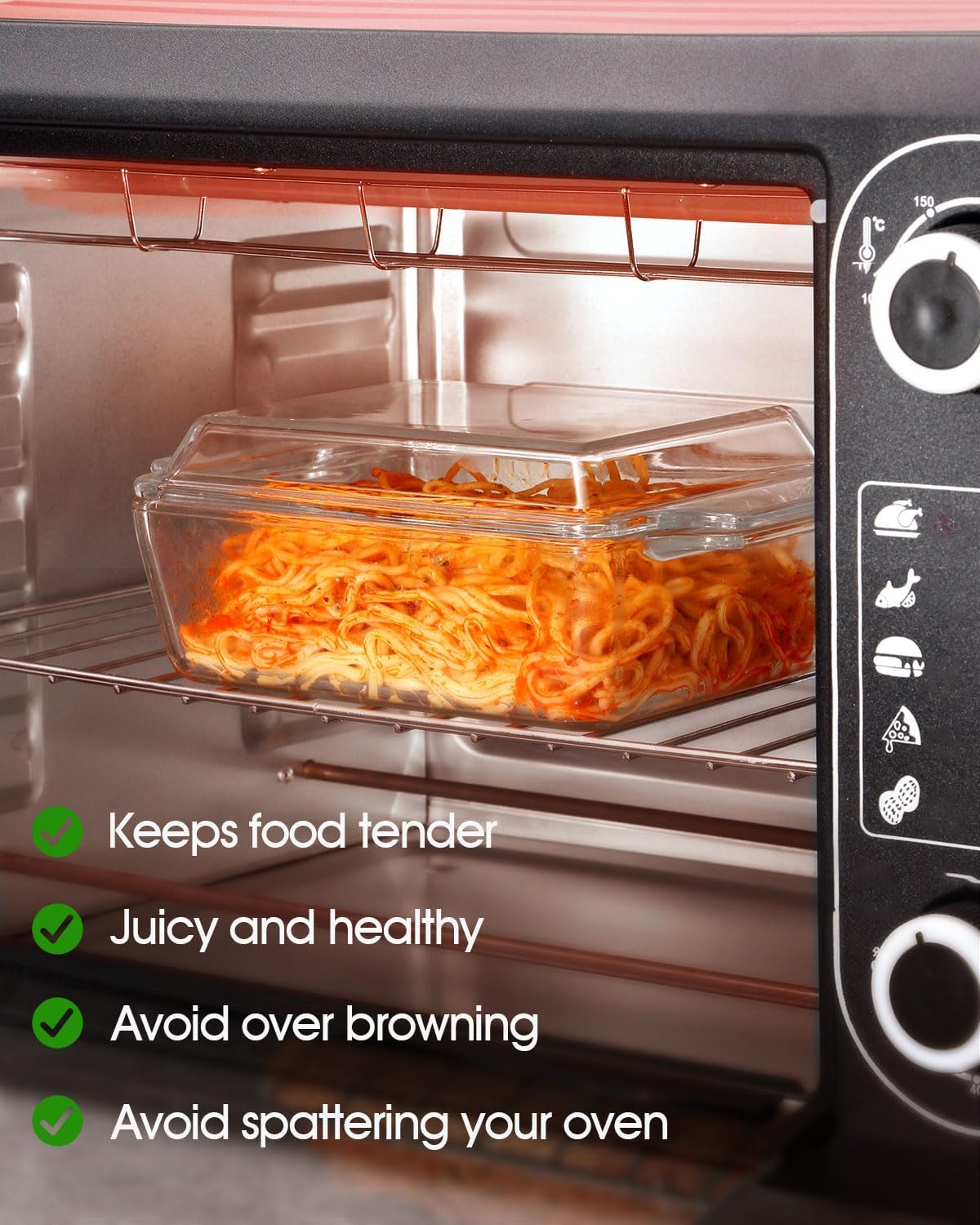 - 2 IN 1 DESIGN: The glass cover can be a shallow baking & serving dish. The lid adds functionality for those dishes that spatter your oven, or for casseroles that need a cover to avoid drying or browning, or to cover for refrigerator storage.