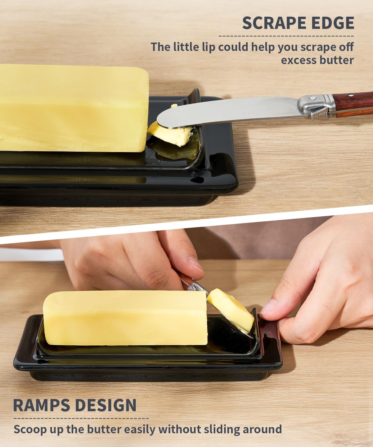 - The Best Choice - Search no more, you have come to the right place! Our butter cover with the handy handle, it let you access the butter easily. And the delicate butter dish adds a touch of elegance to your kitchen. Will dazzle your guests!