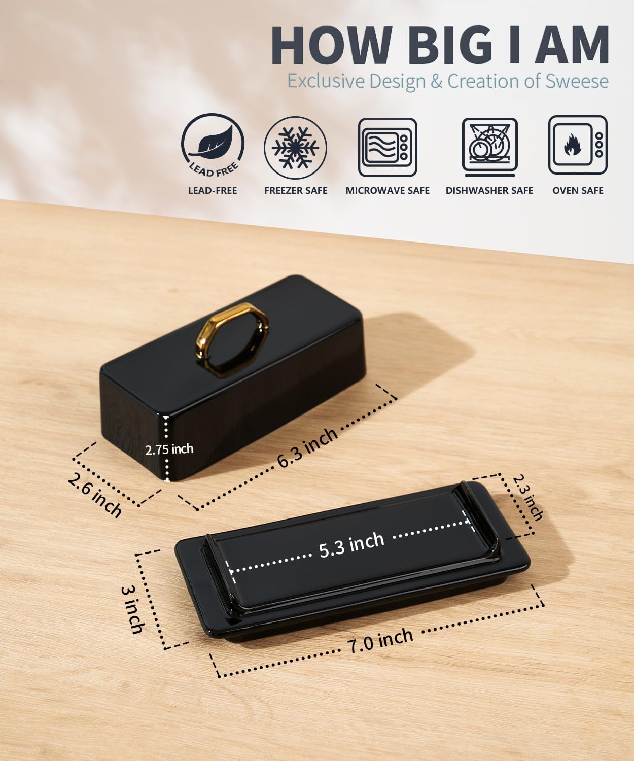 - Pro-Grade Porcelain & SAFE - These Sweese butter dish with lid is food safe, BPA-FREE and LEAD-FREE than the ugly plastic kind of butter dishes. It is made of sturdy porcelain, chip-resistant, and more sturdy than stoneware. And the lid is thick so will protect from sunlight heat.